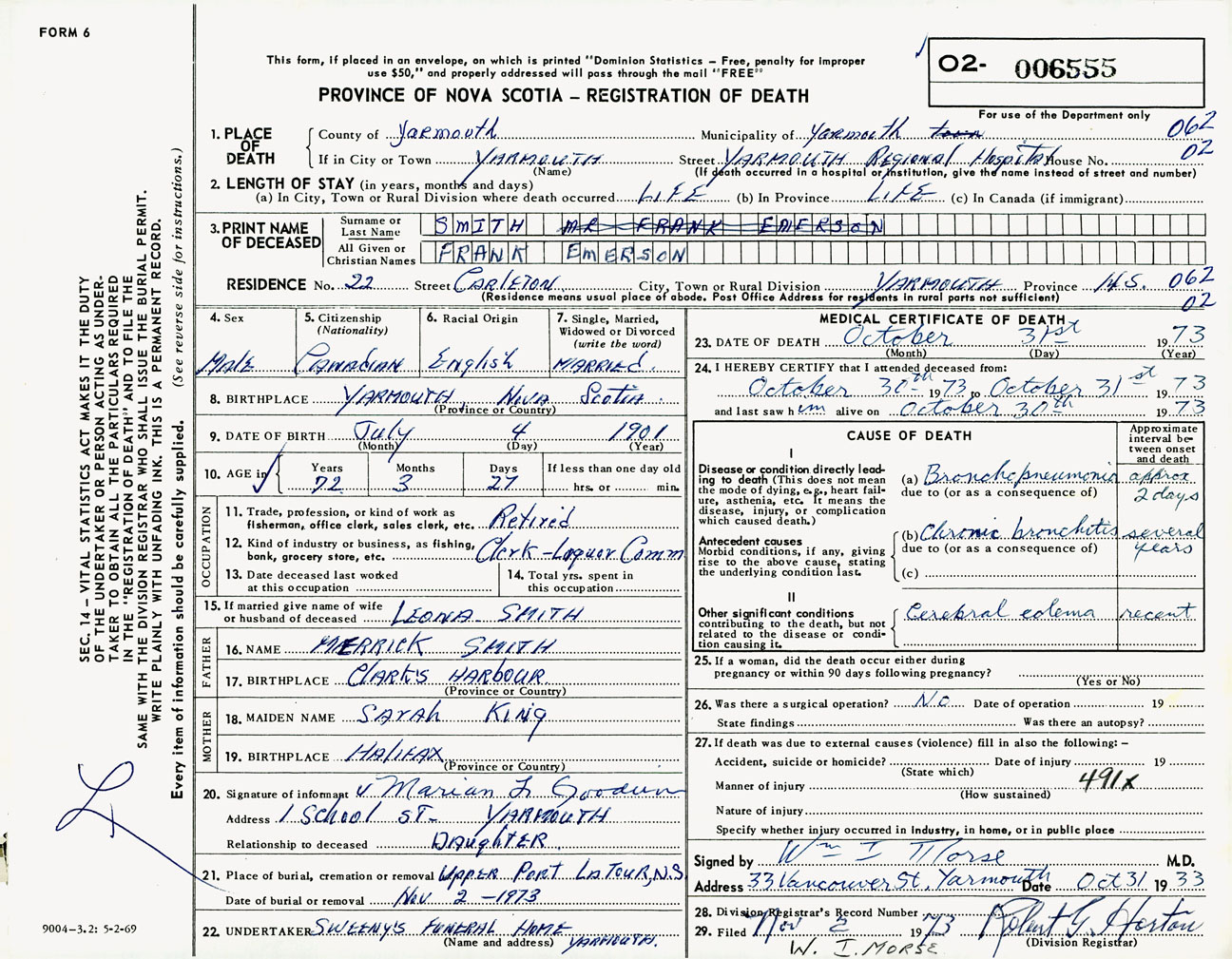 Male Death Registration: Year: 1973 number: 6555