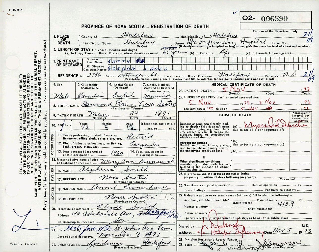 Male Death Registration: Year: 1973 number: 6590