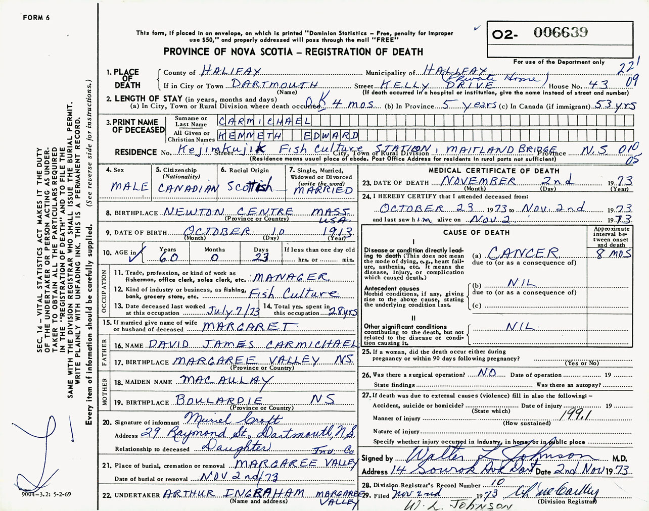 Male Death Registration: Year: 1973 number: 6639