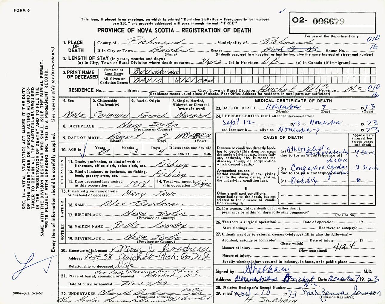 Male Death Registration: Year: 1973 number: 6679