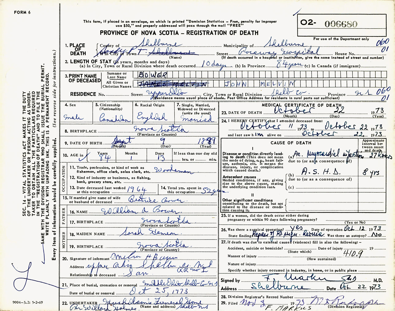 Male Death Registration: Year: 1973 number: 6680