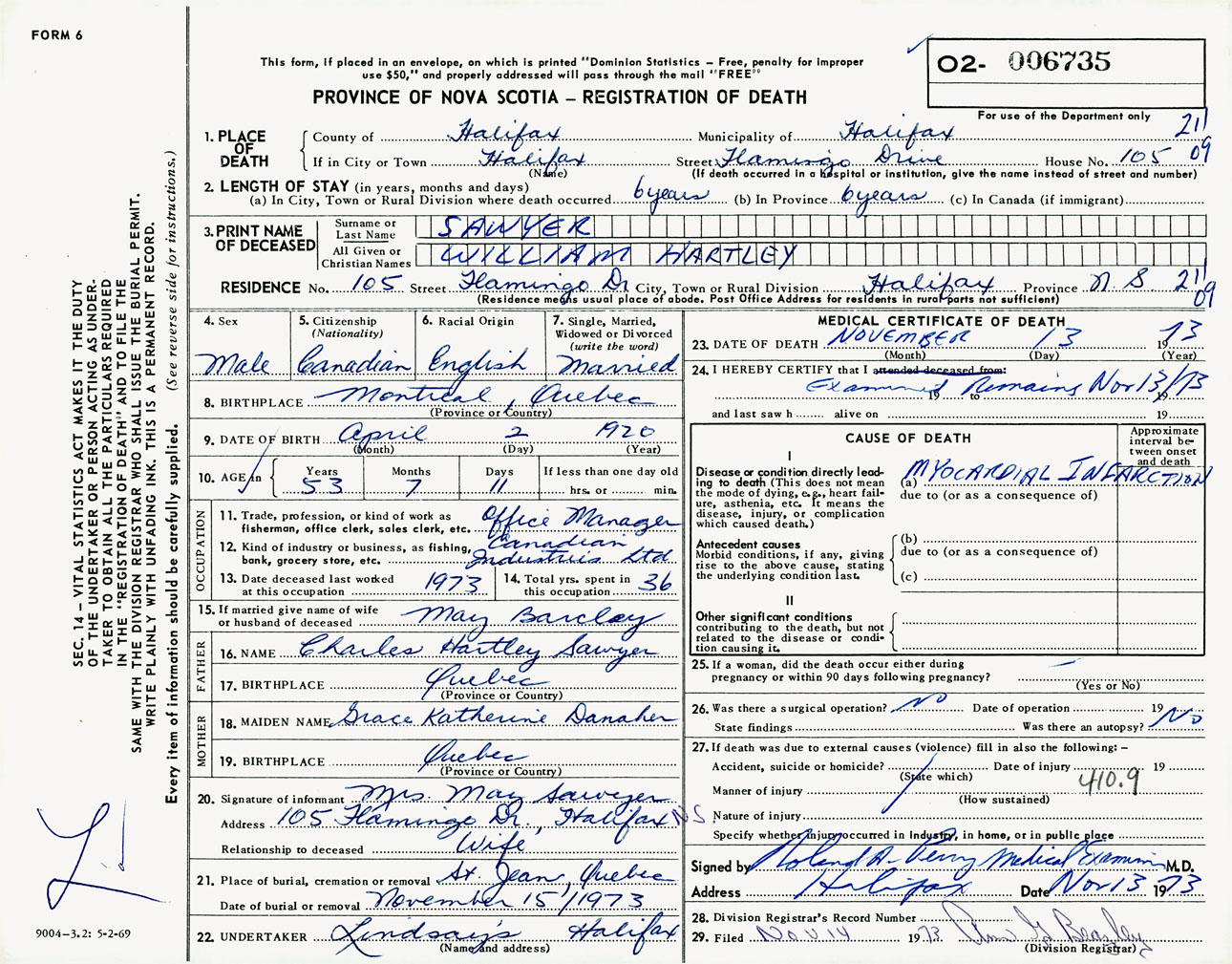 Male Death Registration: Year: 1973 number: 6735