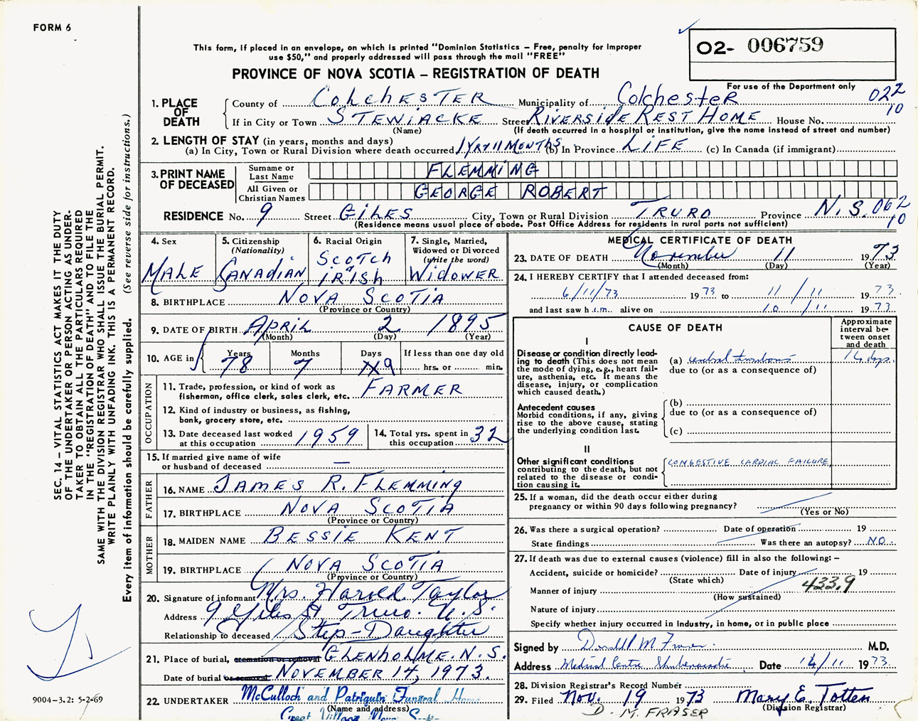 Male Death Registration: Year: 1973 number: 6759