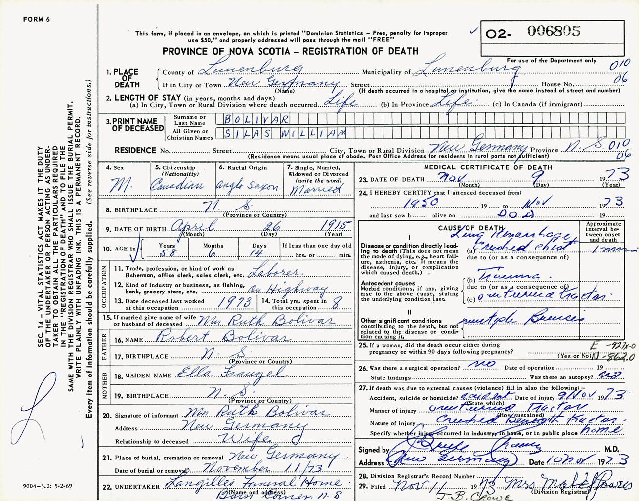 Male Death Registration: Year: 1973 number: 6805