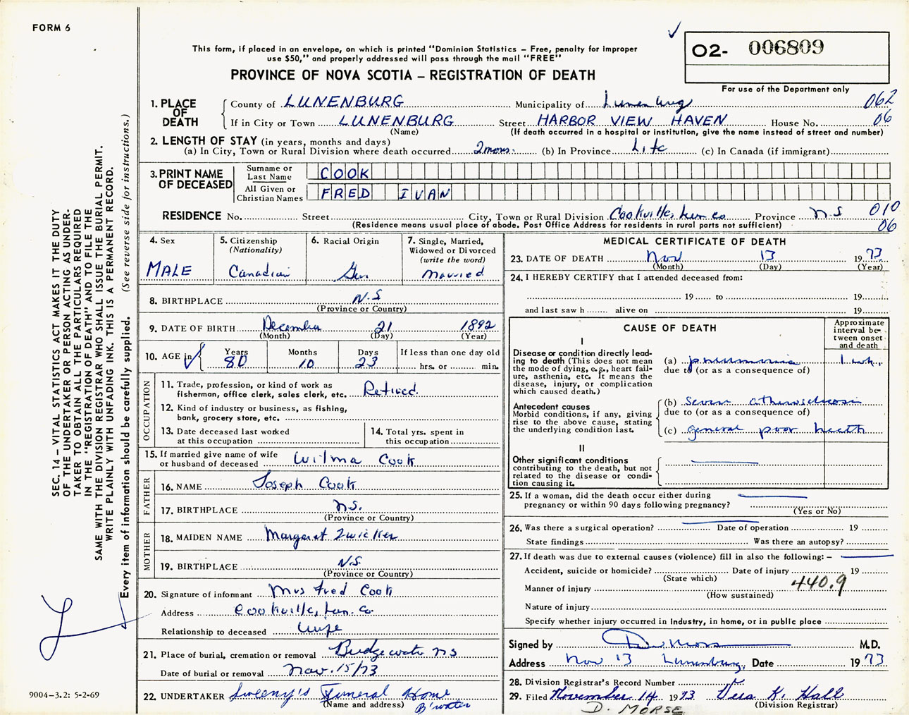 Male Death Registration: Year: 1973 number: 6809