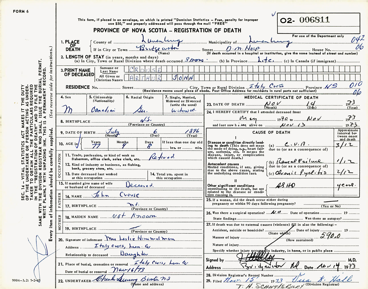 Male Death Registration: Year: 1973 number: 6811