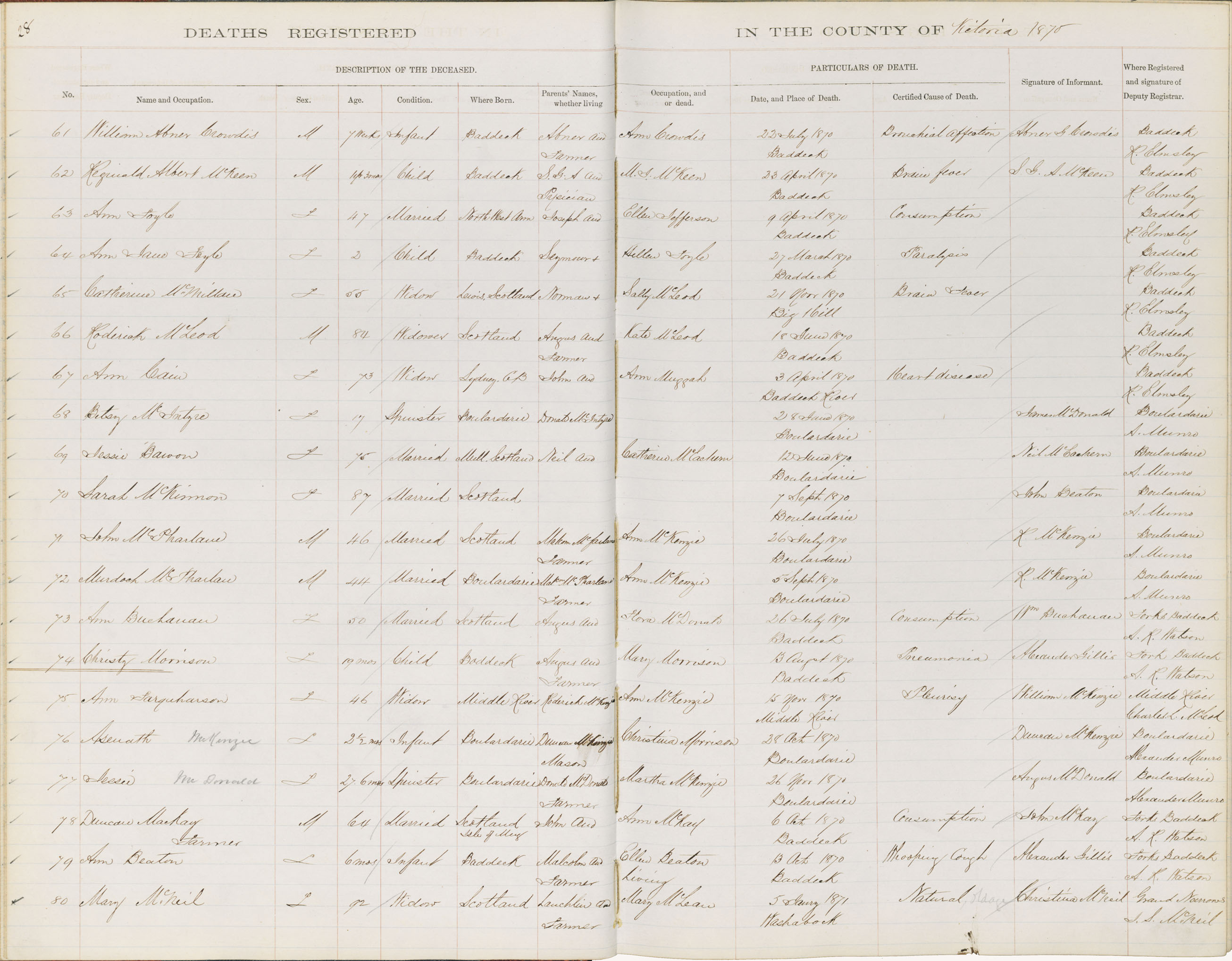 Male Death Registration: Year: 1870 book: 1817 page: 28 number: 61