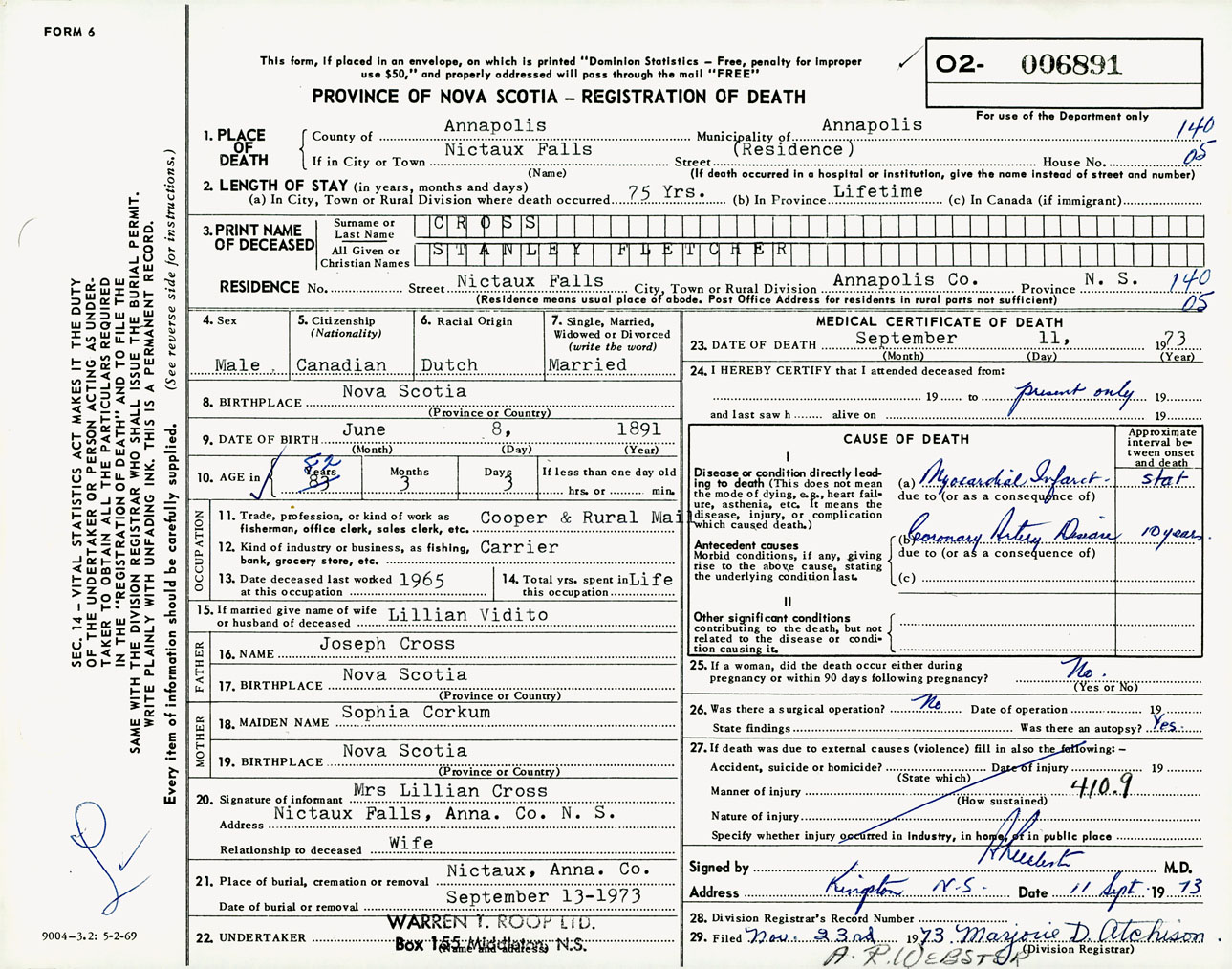 Male Death Registration: Year: 1973 number: 6891