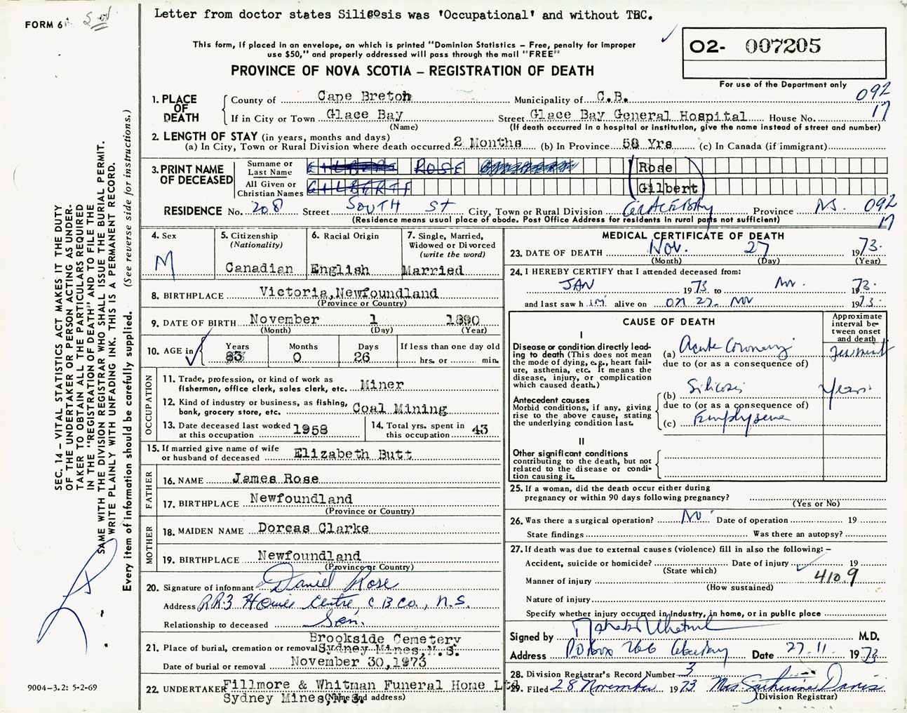 Male Death Registration: Year: 1973 number: 7205