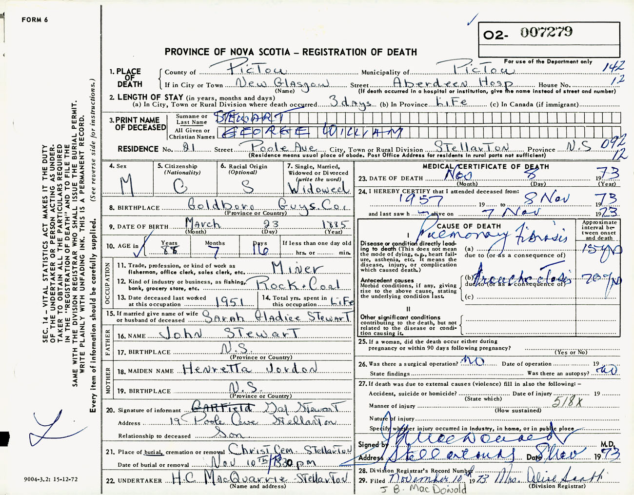 Male Death Registration: Year: 1973 number: 7279