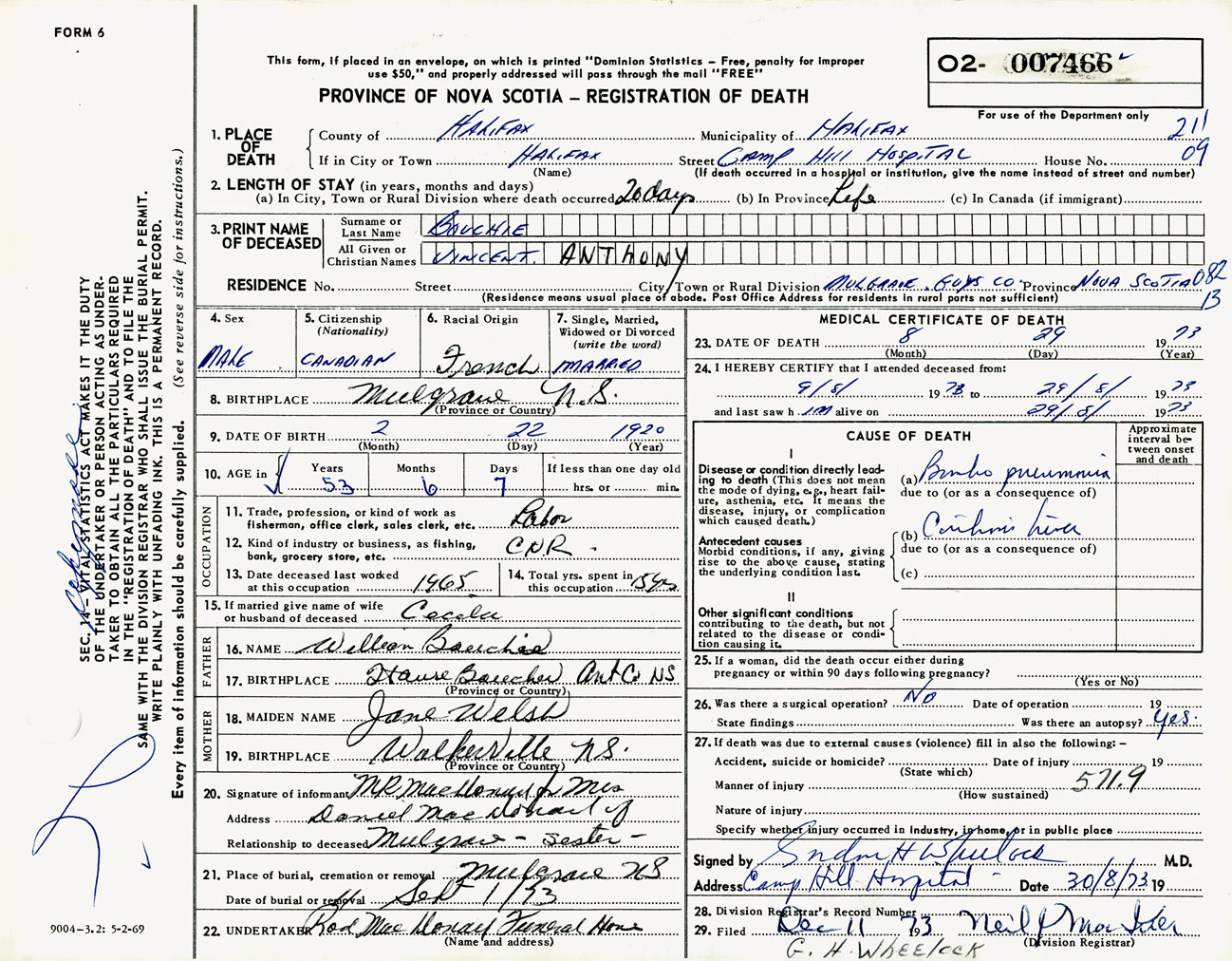 Male Death Registration: Year: 1973 number: 7466