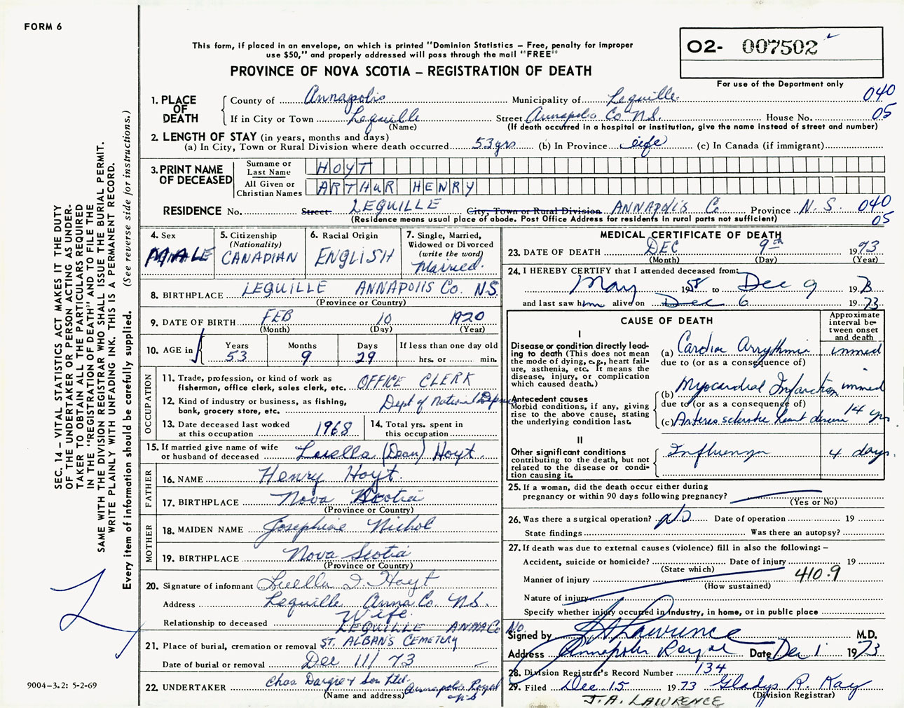 Male Death Registration: Year: 1973 number: 7502