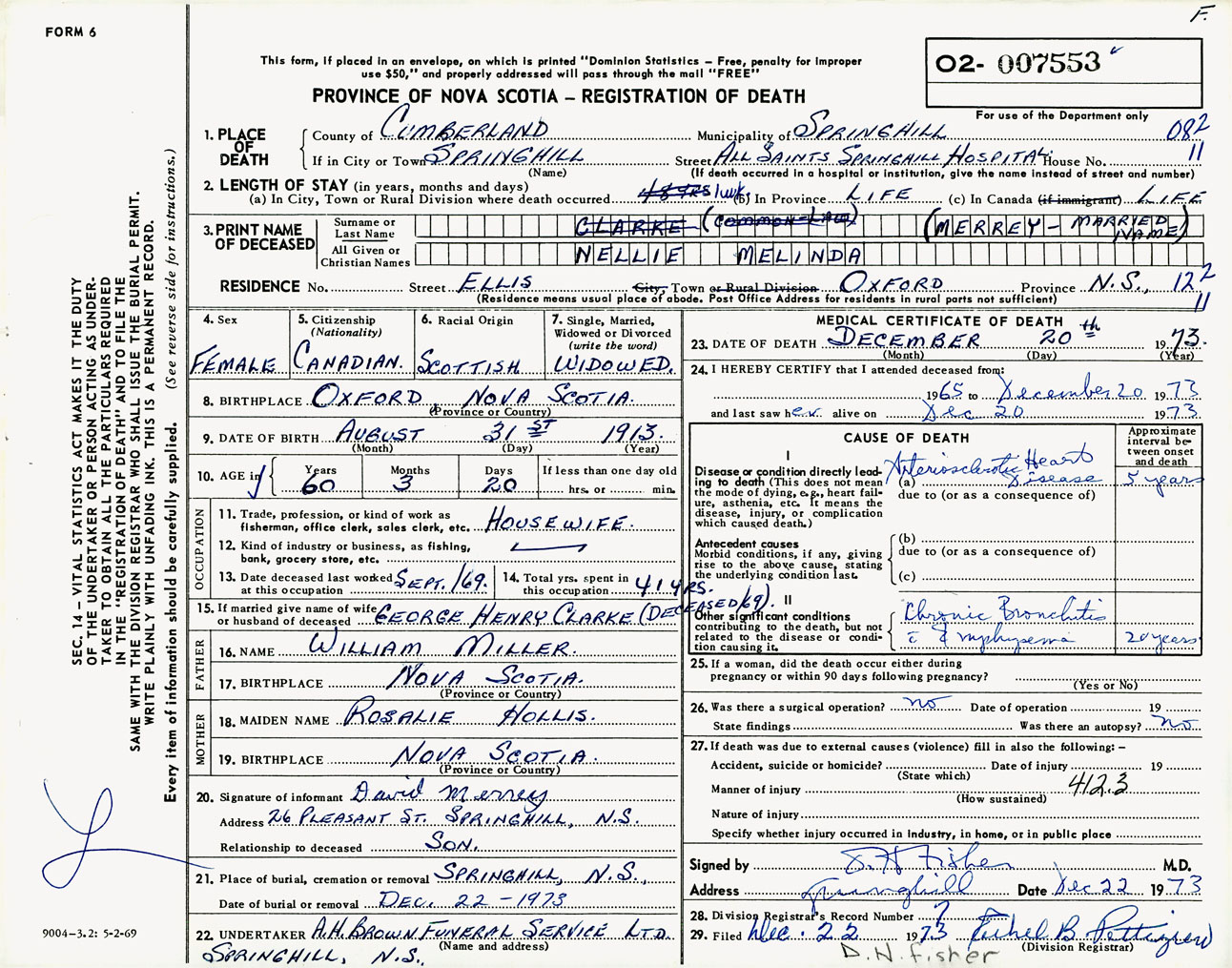 Female Death Registration: Year: 1973 number: 7553