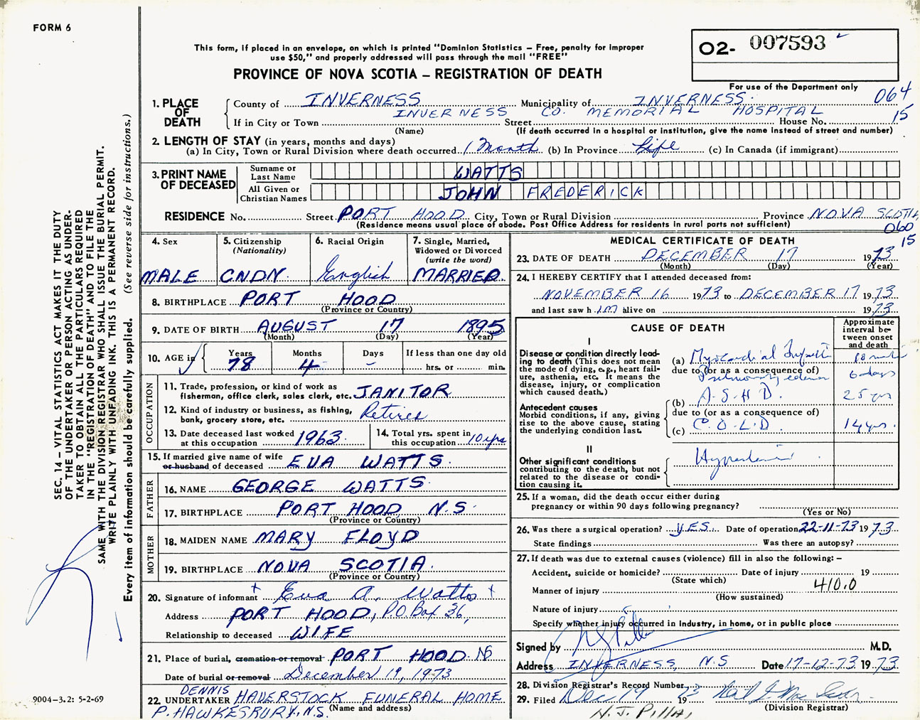 Male Death Registration: Year: 1973 number: 7593