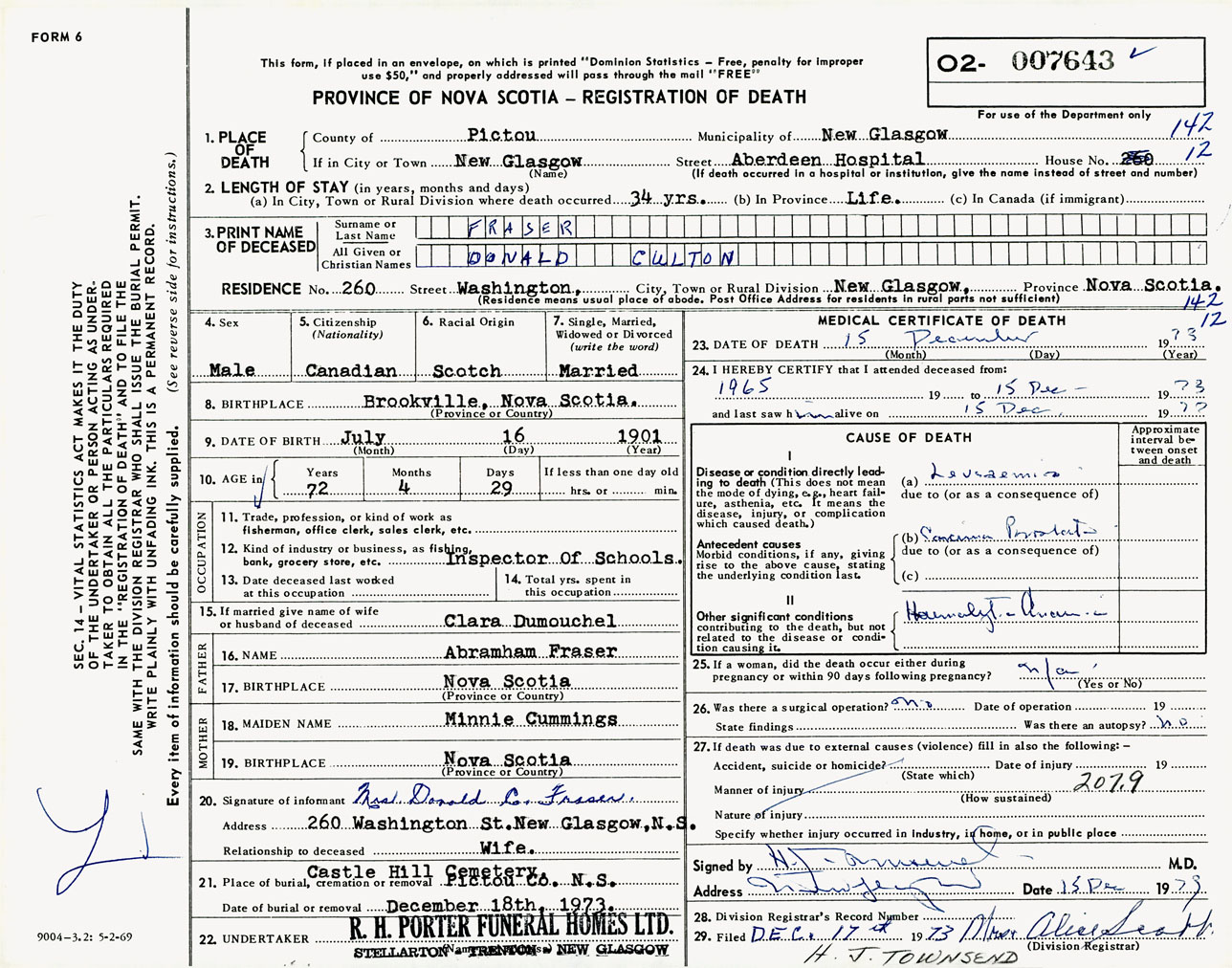Male Death Registration: Year: 1973 number: 7643