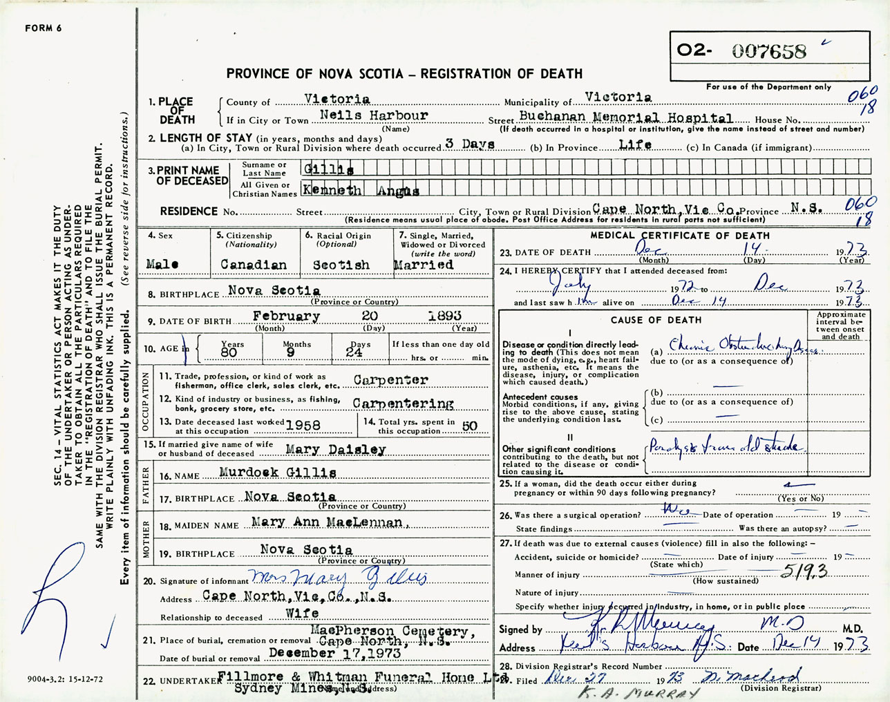 Male Death Registration: Year: 1973 number: 7658