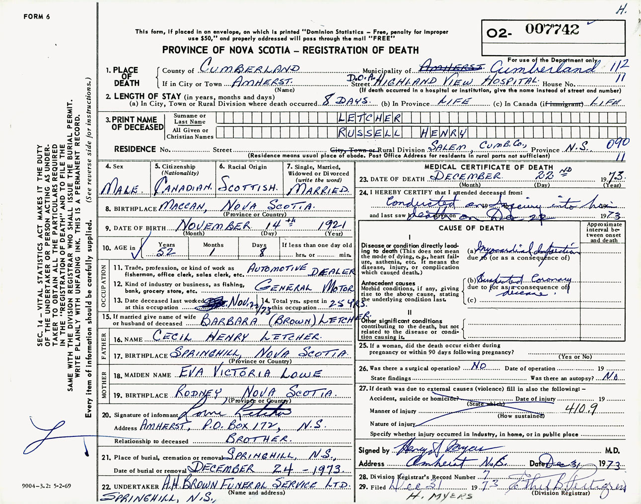 Male Death Registration: Year: 1973 number: 7742