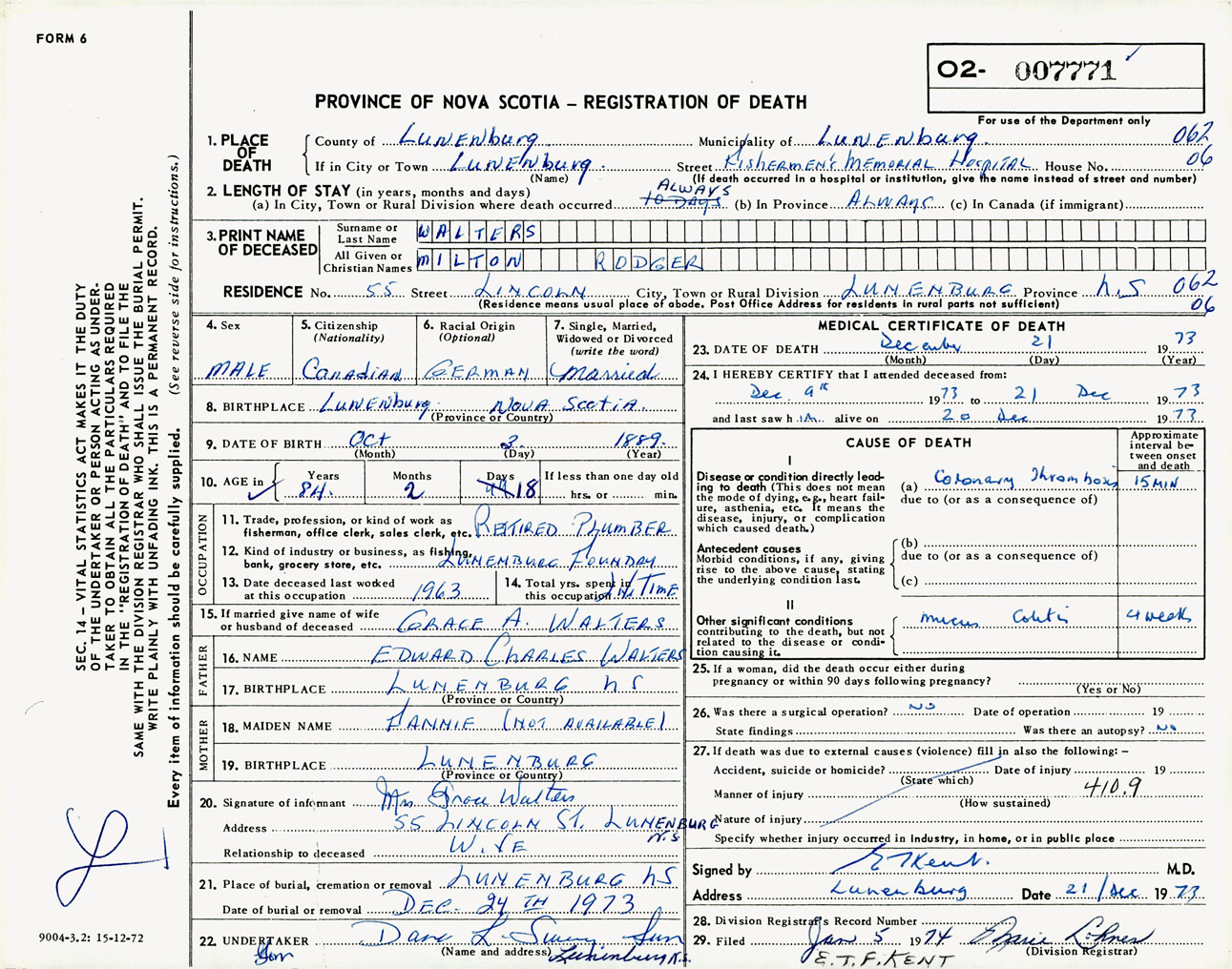 Male Death Registration: Year: 1973 number: 7771