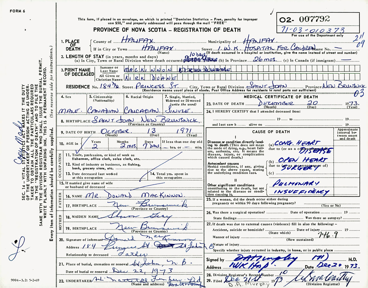 Male Death Registration: Year: 1973 number: 7792