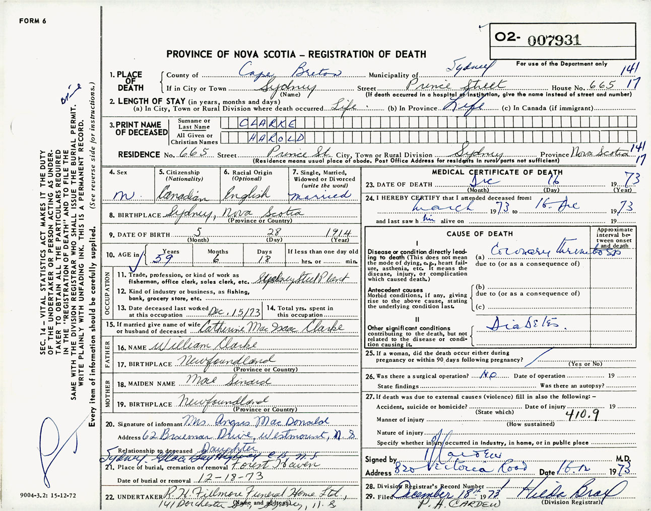 Male Death Registration: Year: 1973 number: 7931