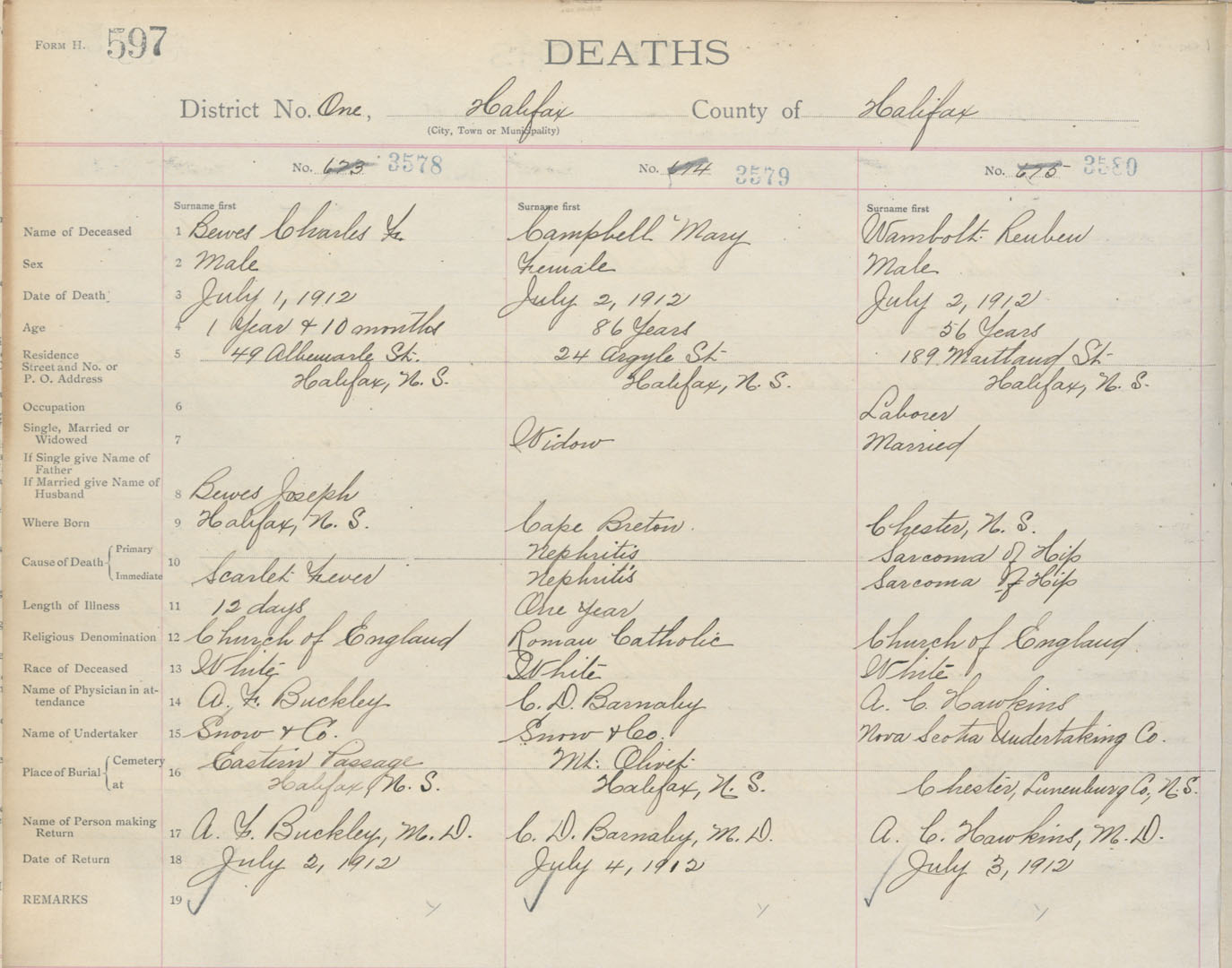 Death Registration: Year: 1912 book: 8 page: 597 number: 3578