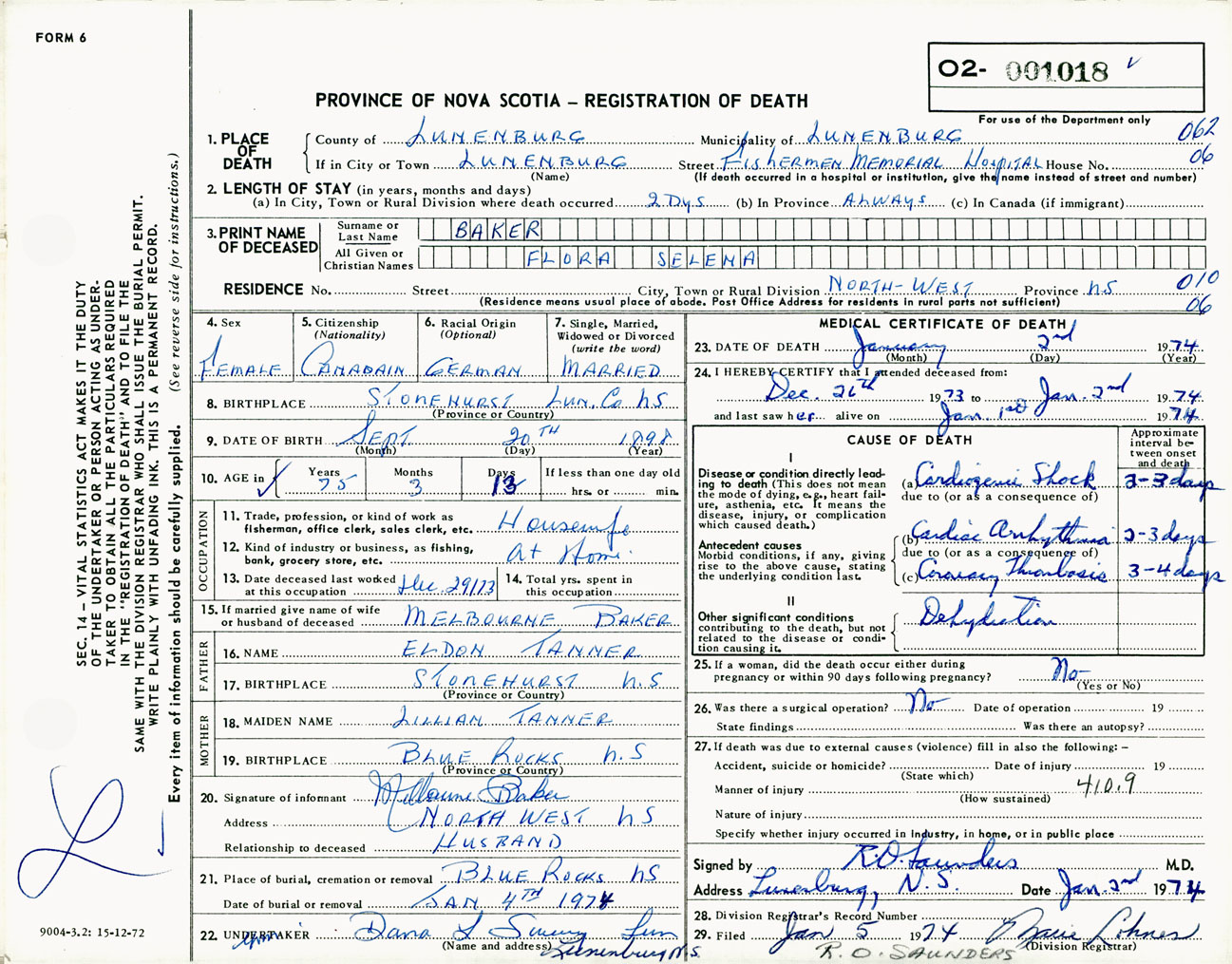 Female Death Registration: Year: 1974 number: 1018