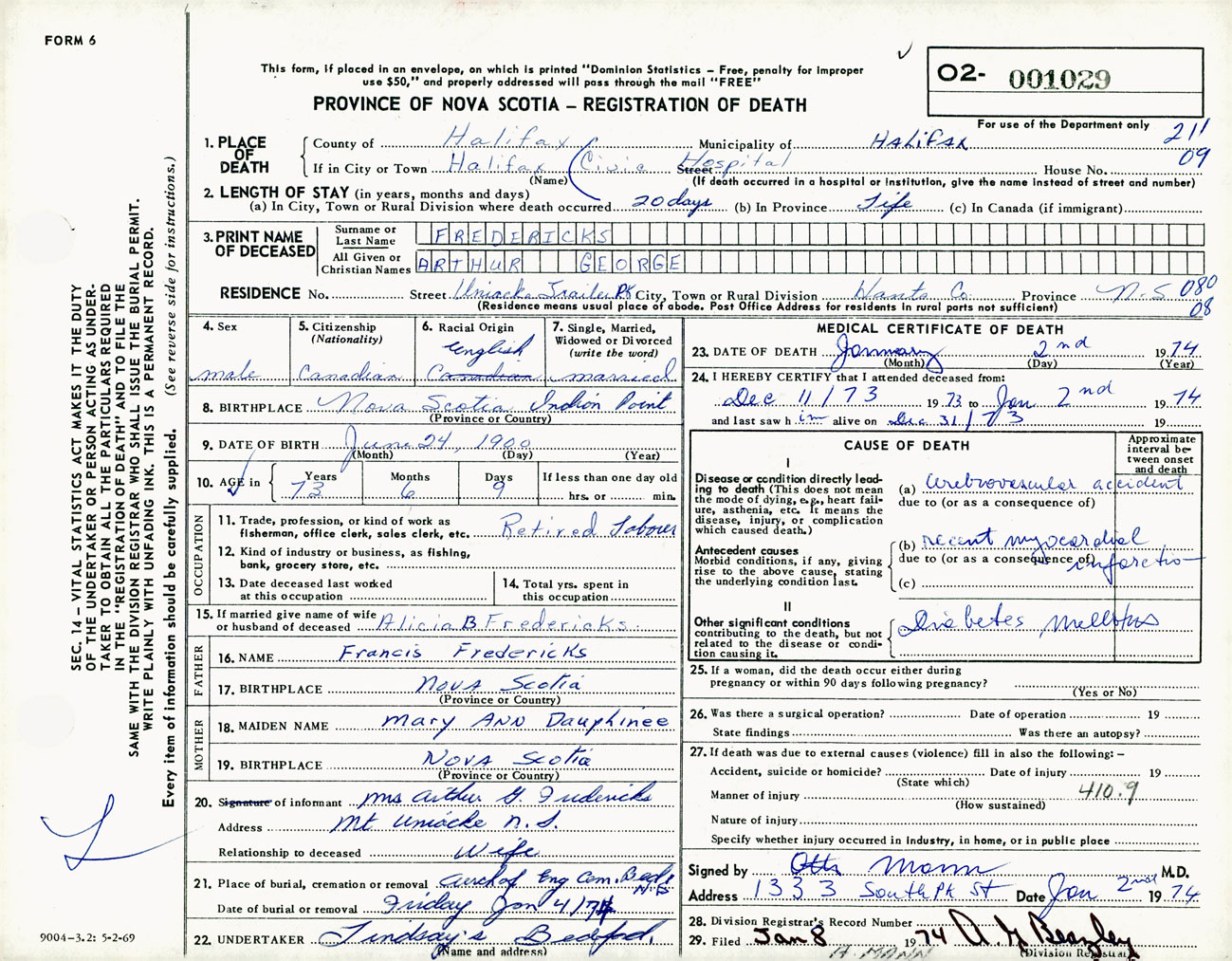 Male Death Registration: Year: 1974 number: 1029