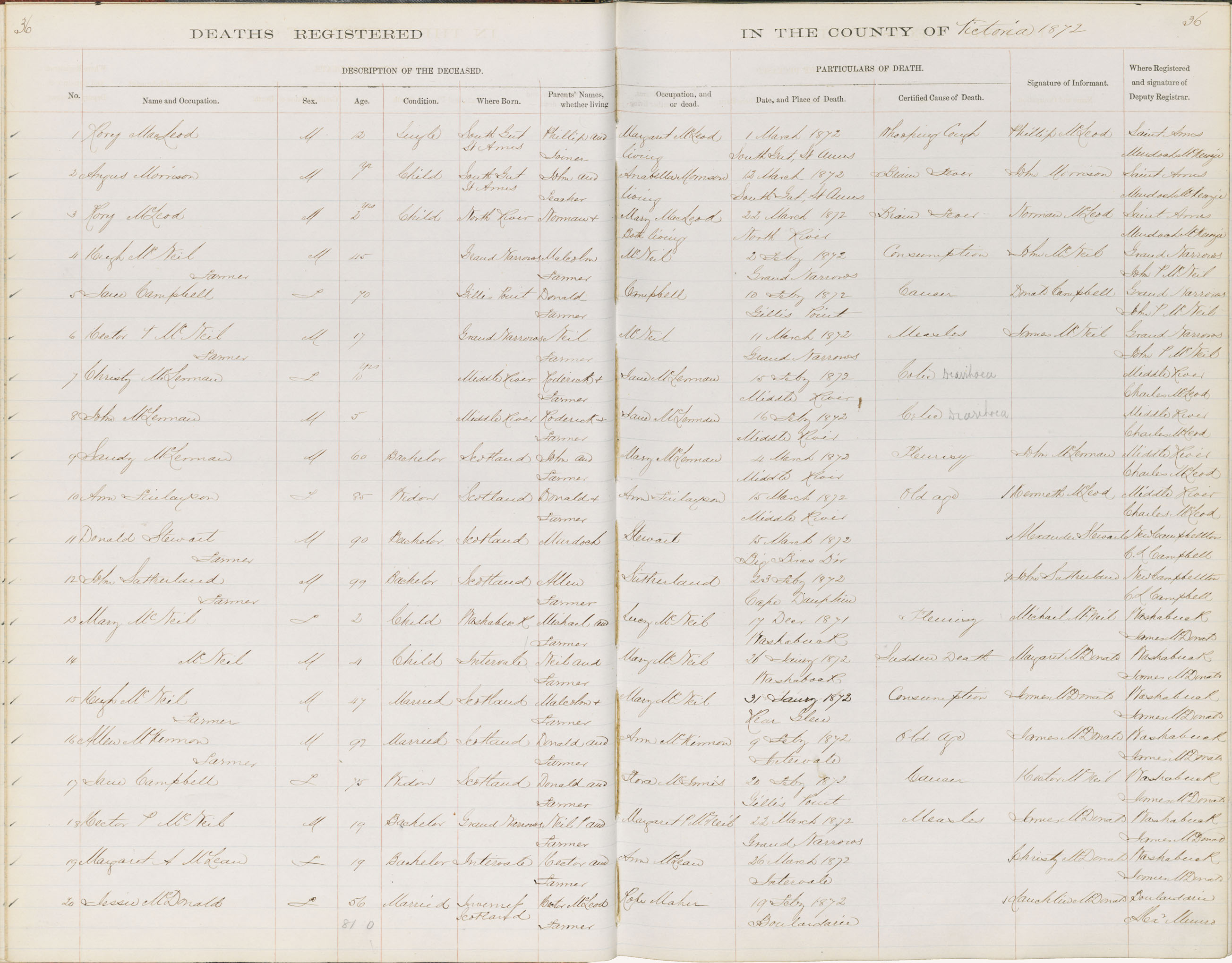 Death Registration: Year: 1872 book: 1817 page: 36 number: 1