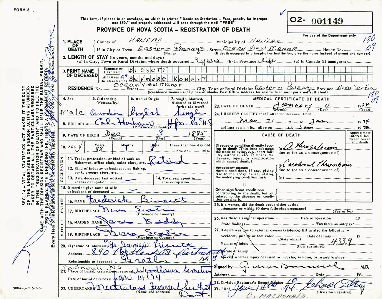 Male Death Registration: Year: 1974 number: 1149