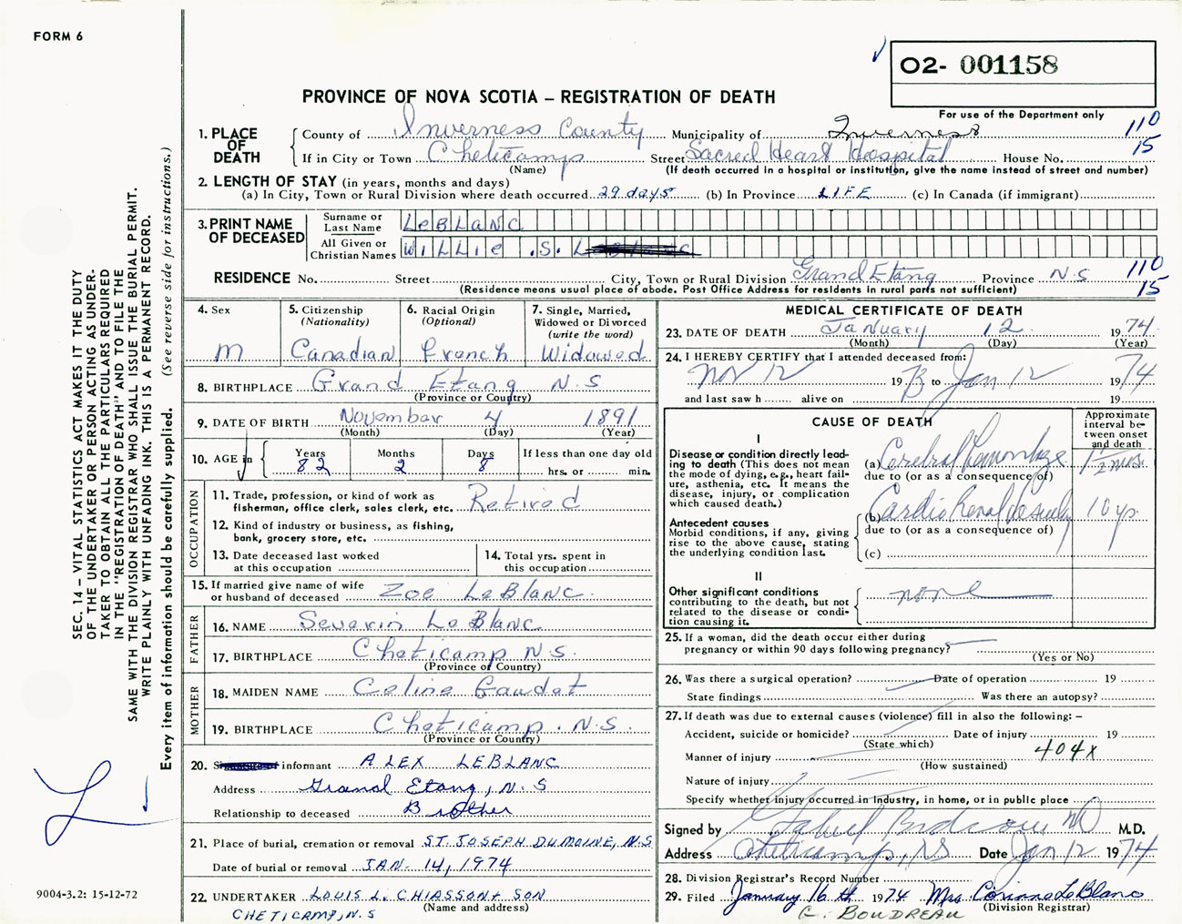Male Death Registration: Year: 1974 number: 1158