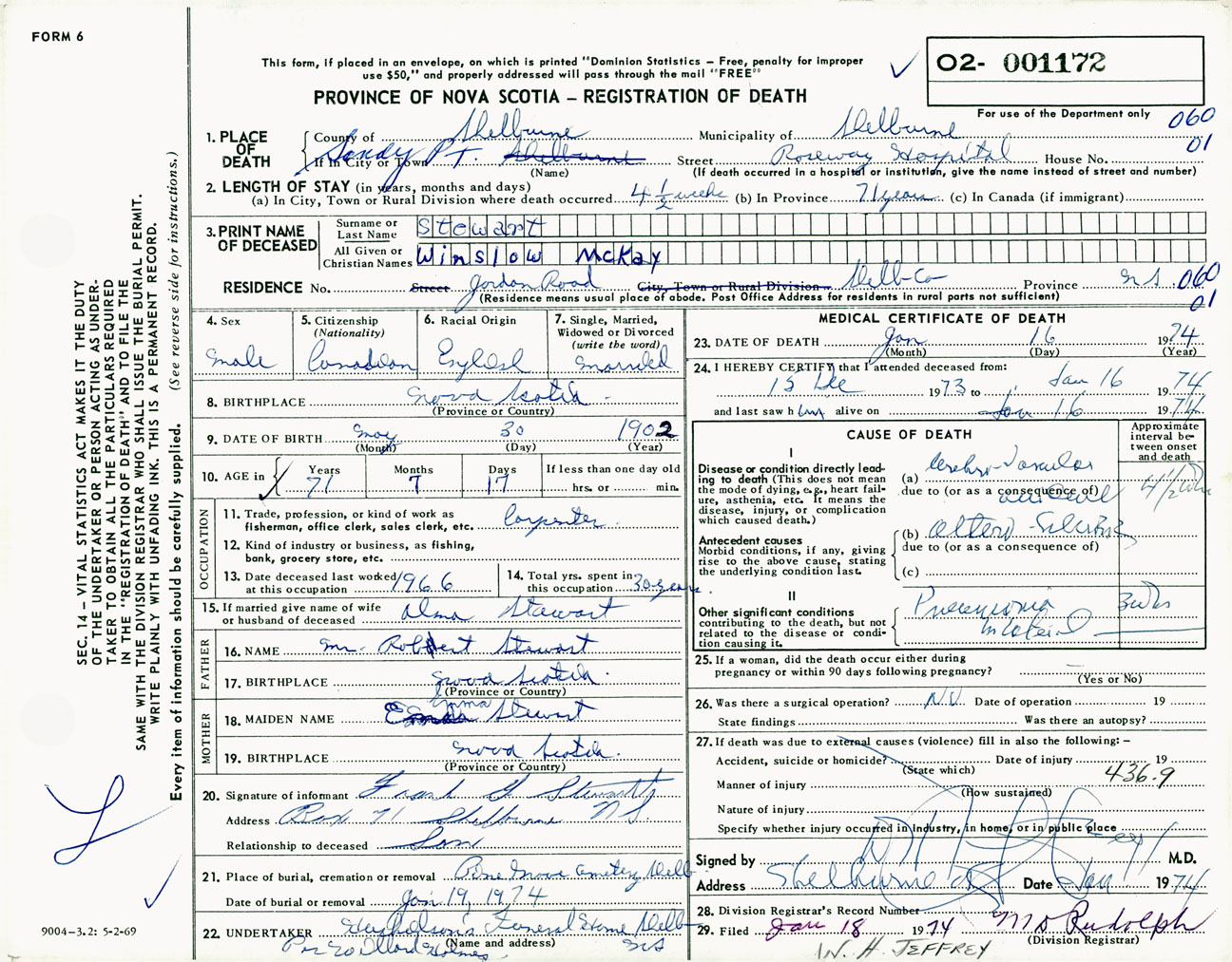 Male Death Registration: Year: 1974 number: 1172