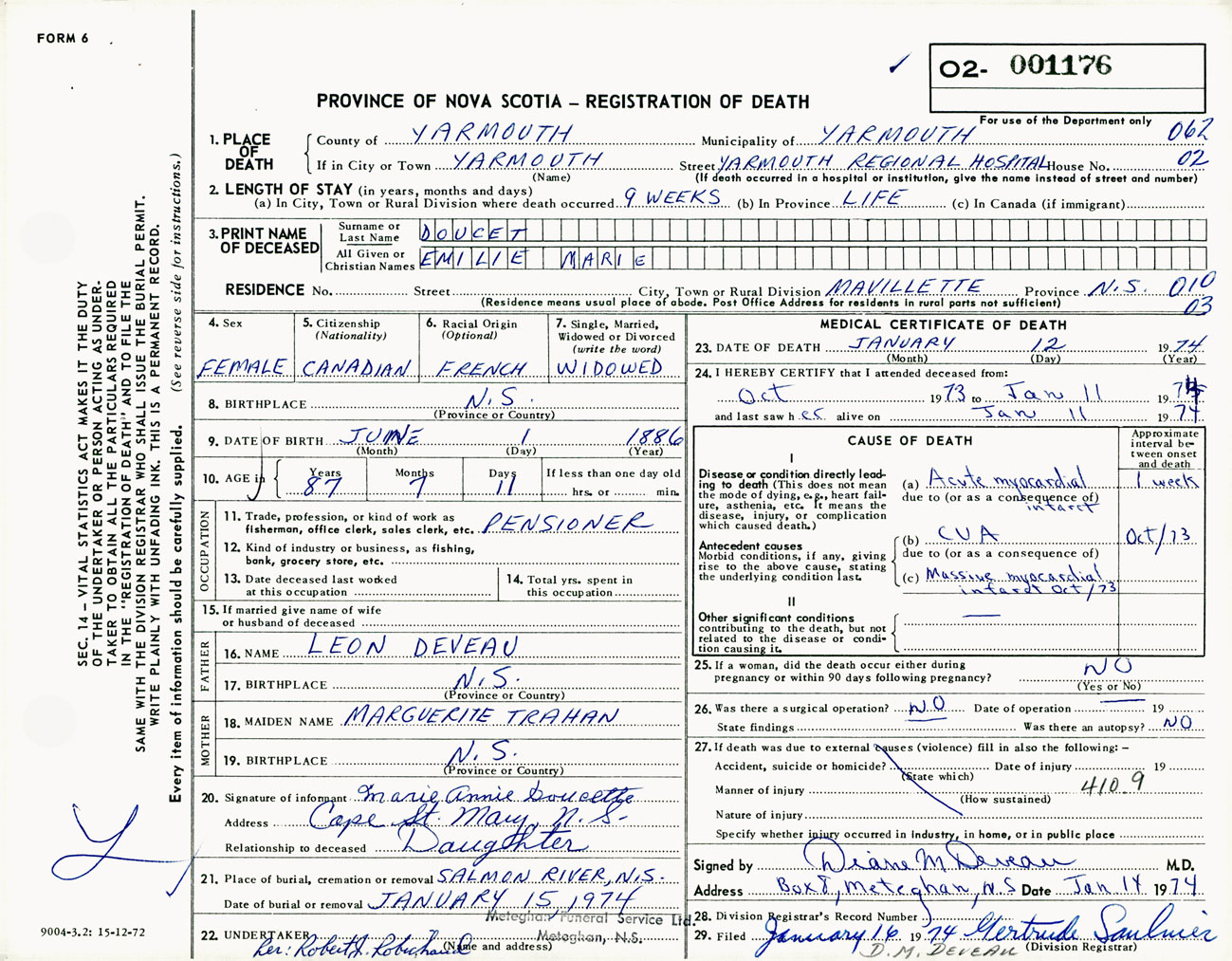 Female Death Registration: Year: 1974 number: 1176