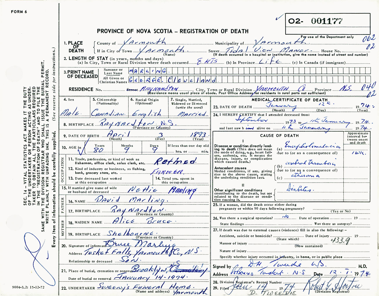 Male Death Registration: Year: 1974 number: 1177