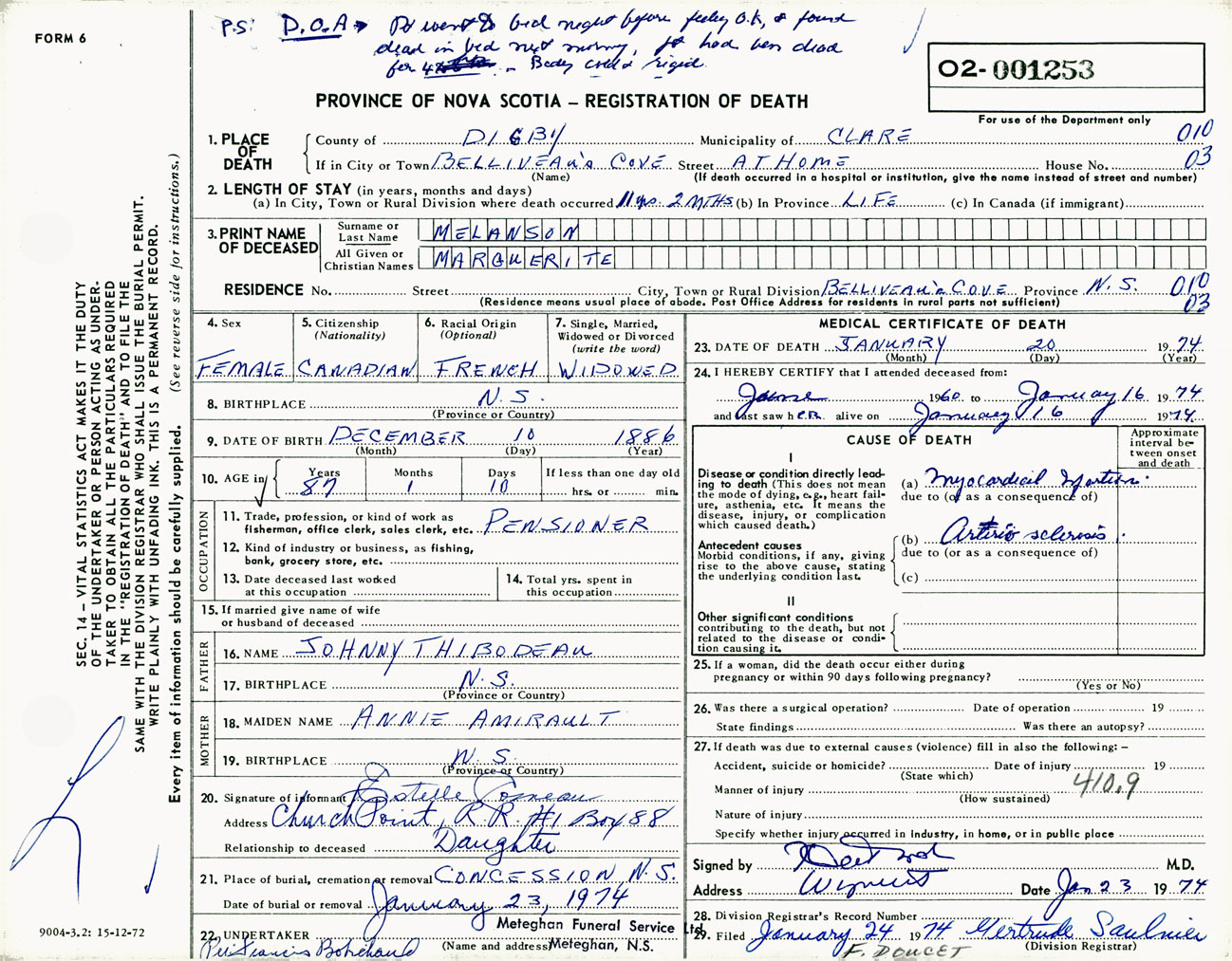 Female Death Registration: Year: 1974 number: 1253