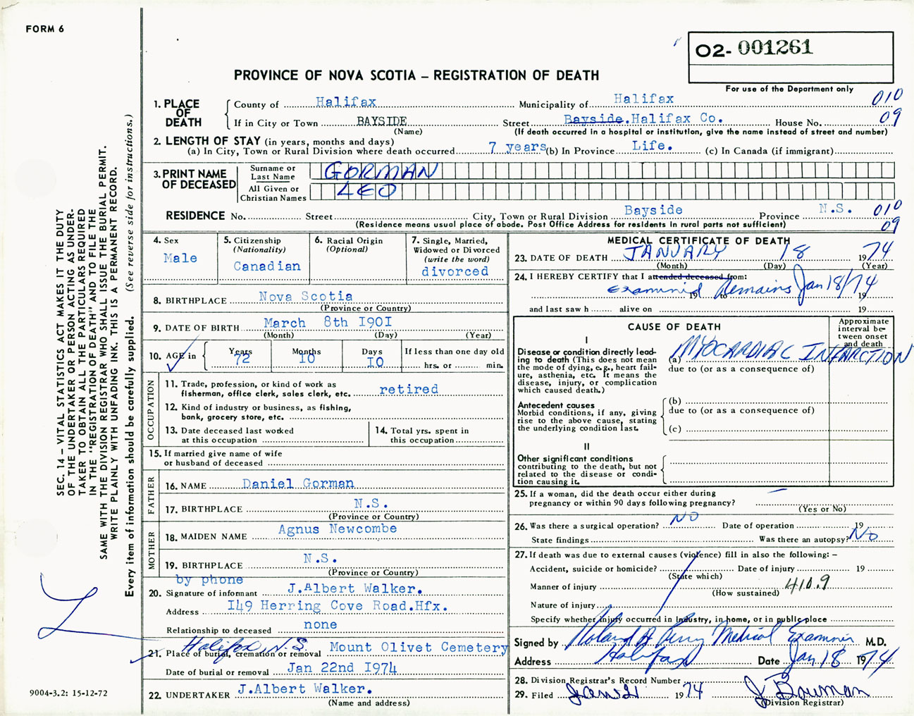 Male Death Registration: Year: 1974 number: 1261
