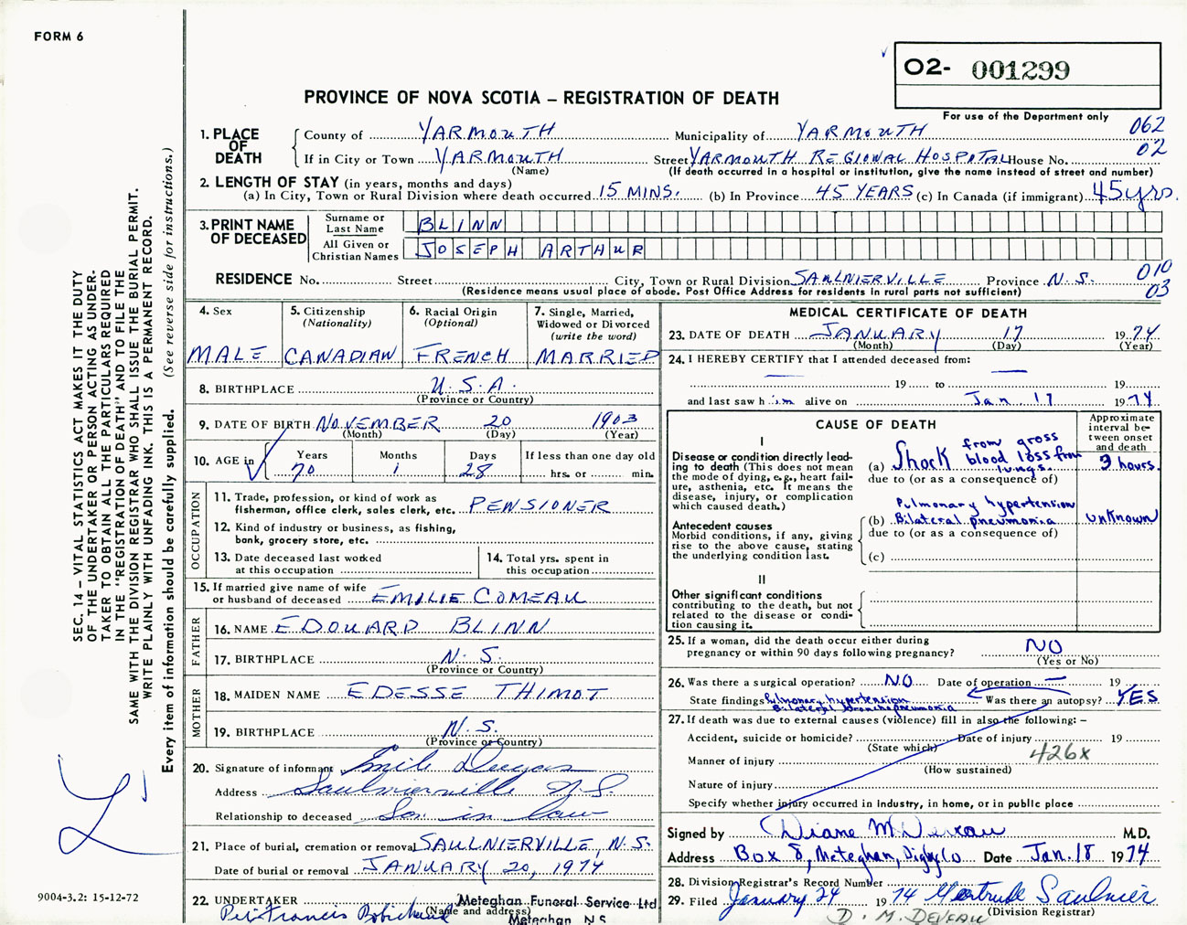 Male Death Registration: Year: 1974 number: 1299