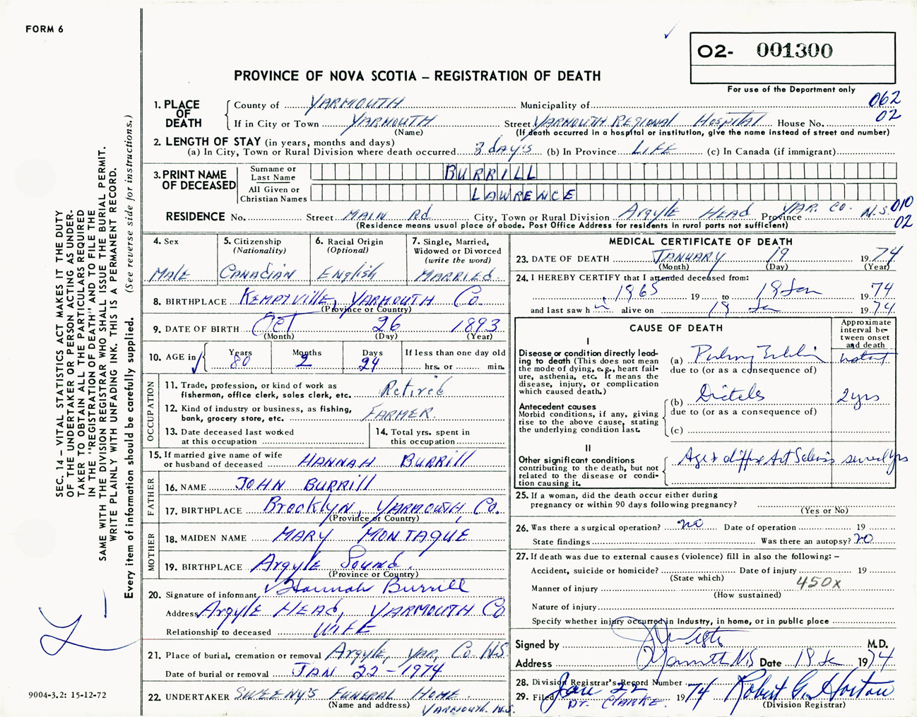 Male Death Registration: Year: 1974 number: 1300