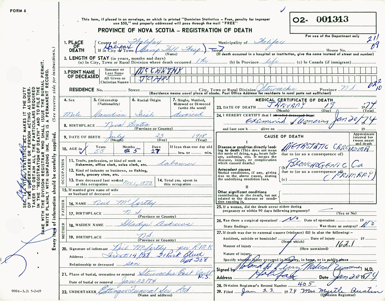 Male Death Registration: Year: 1974 number: 1313