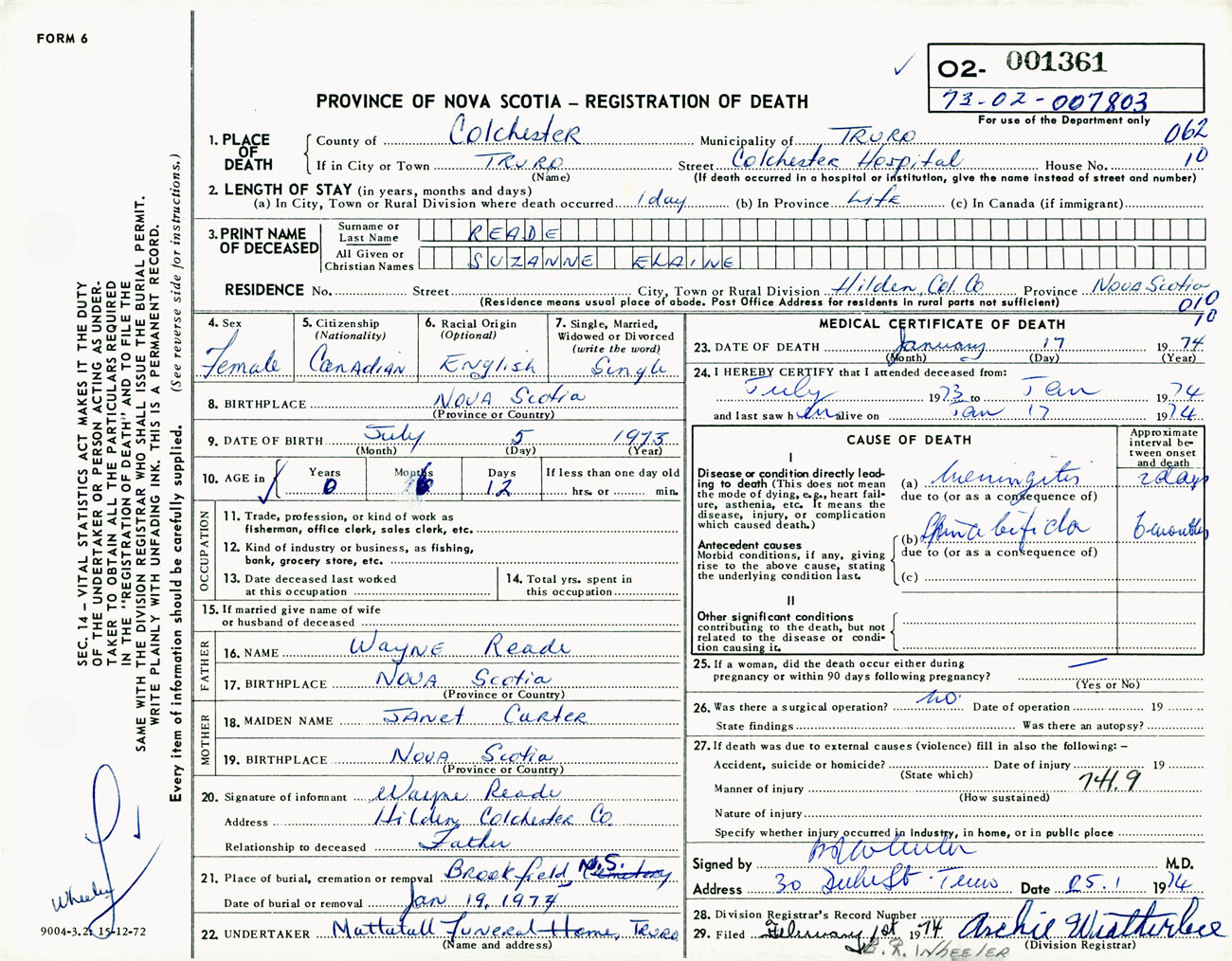 Female Death Registration: Year: 1974 number: 1361