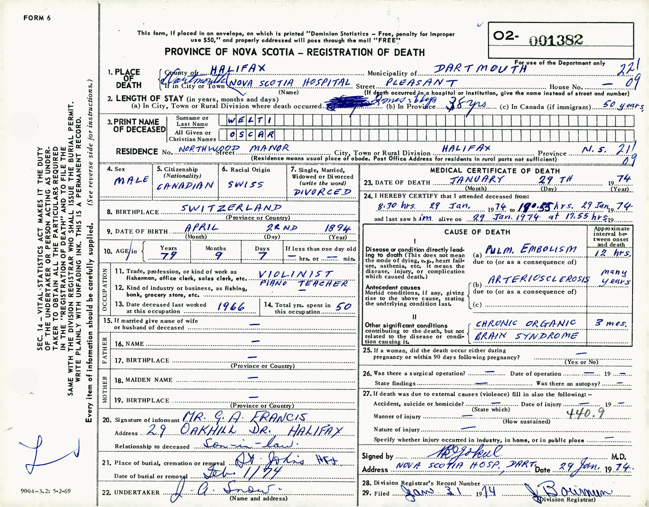 Male Death Registration: Year: 1974 number: 1382