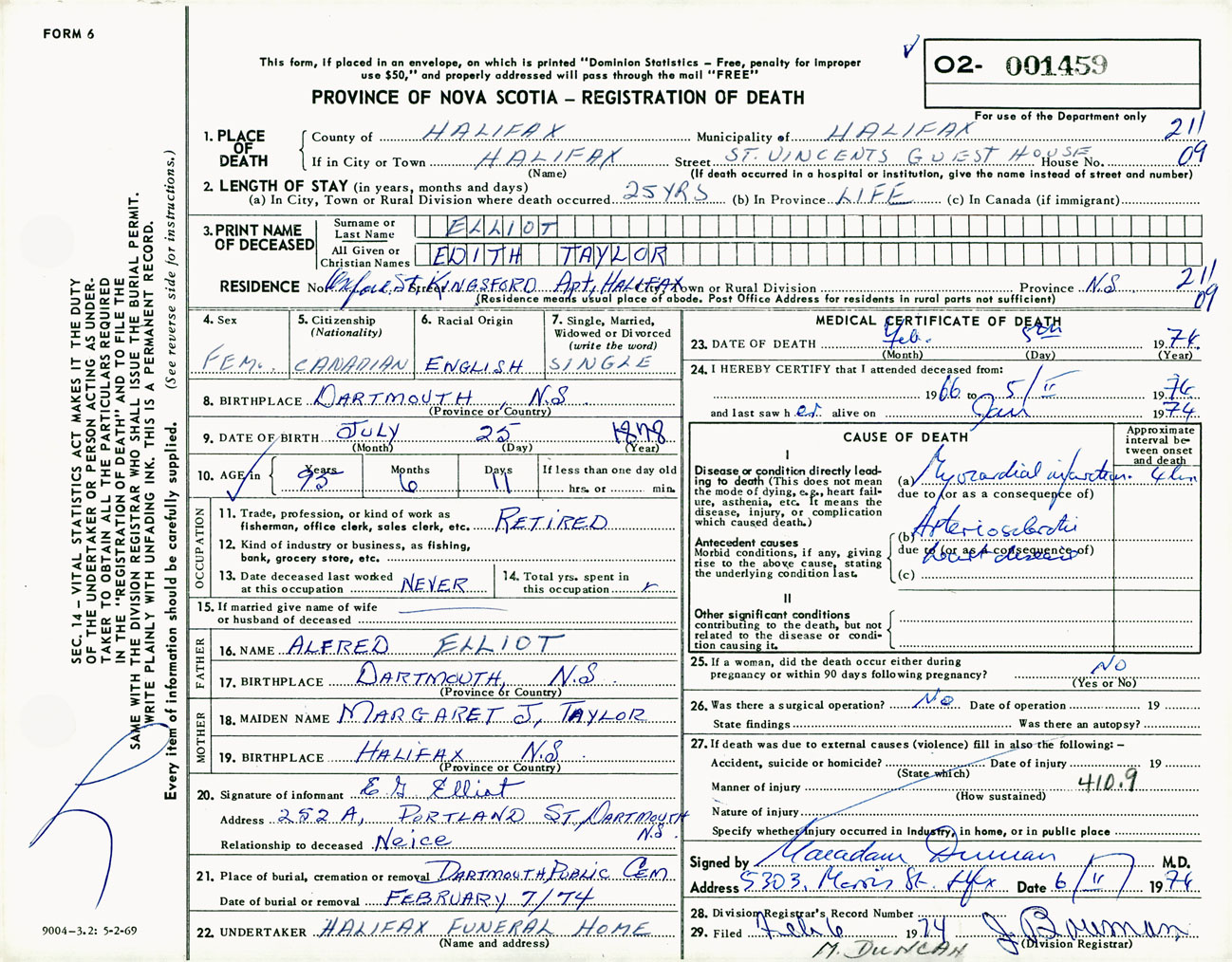 Female Death Registration: Year: 1974 number: 1459