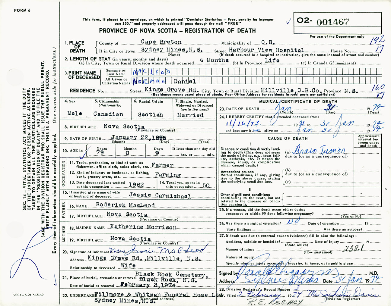Male Death Registration: Year: 1974 number: 1467
