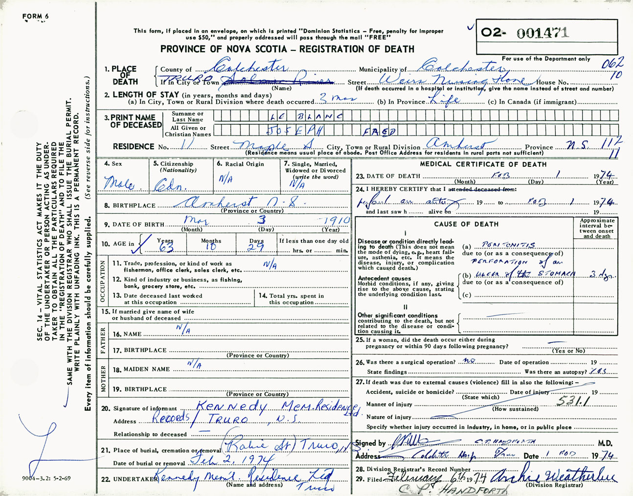 Male Death Registration: Year: 1974 number: 1471