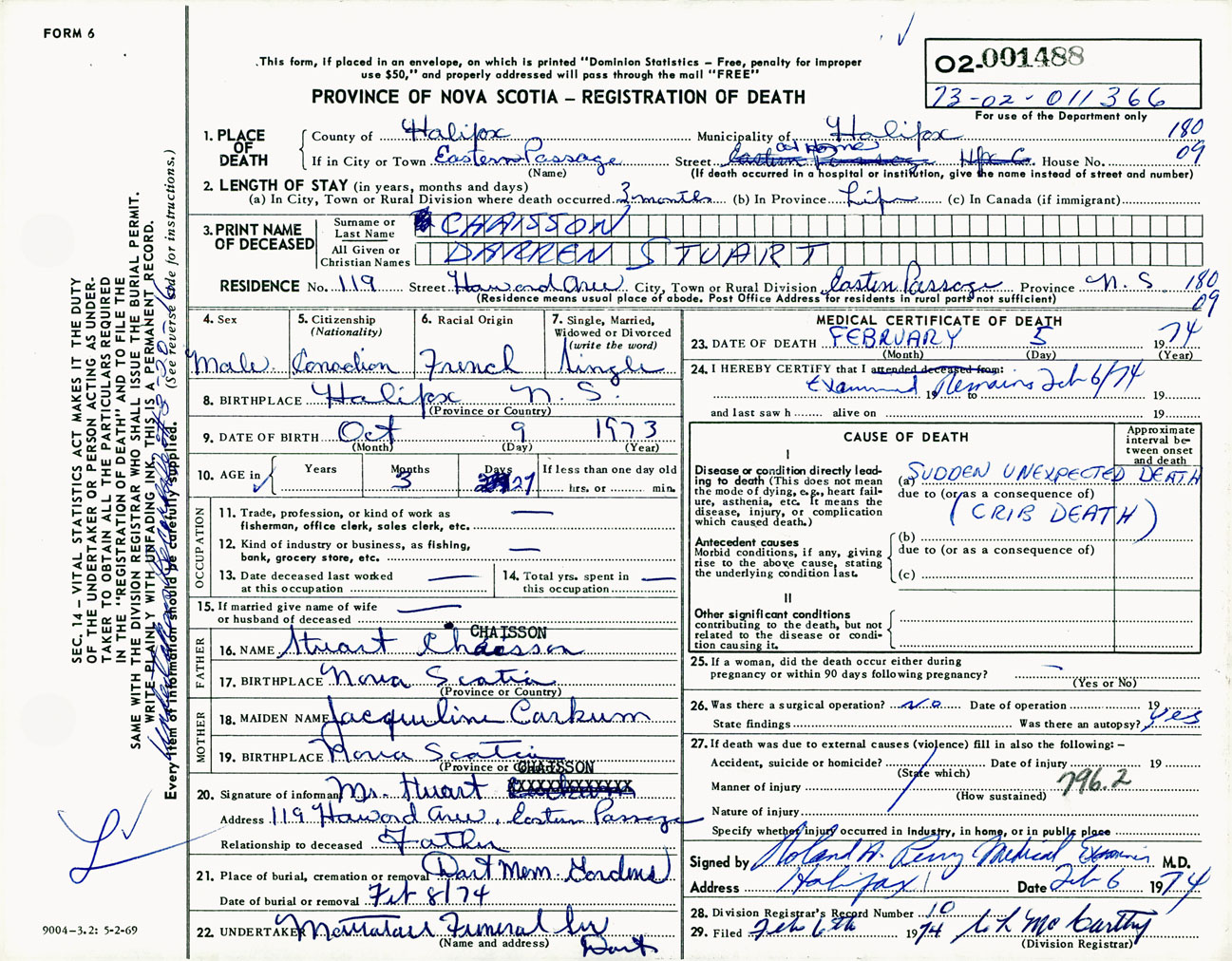 Male Death Registration: Year: 1974 number: 1488
