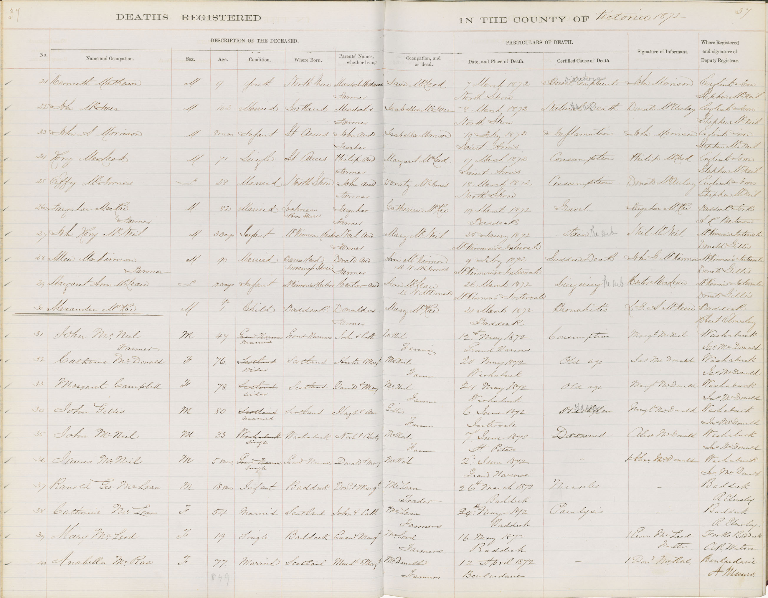 Death Registration: Year: 1872 book: 1817 page: 37 number: 40