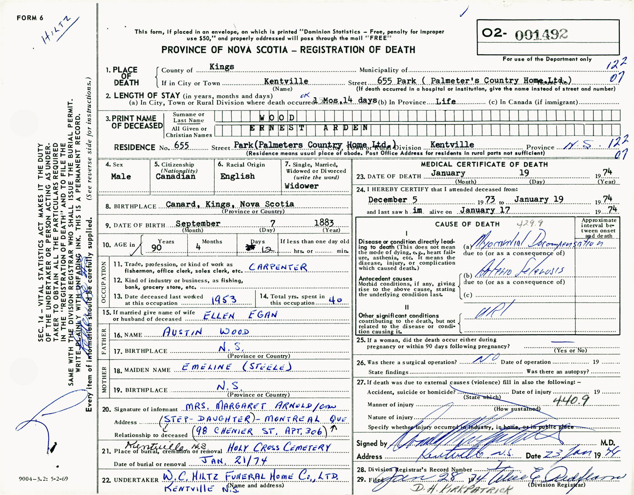 Male Death Registration: Year: 1974 number: 1492