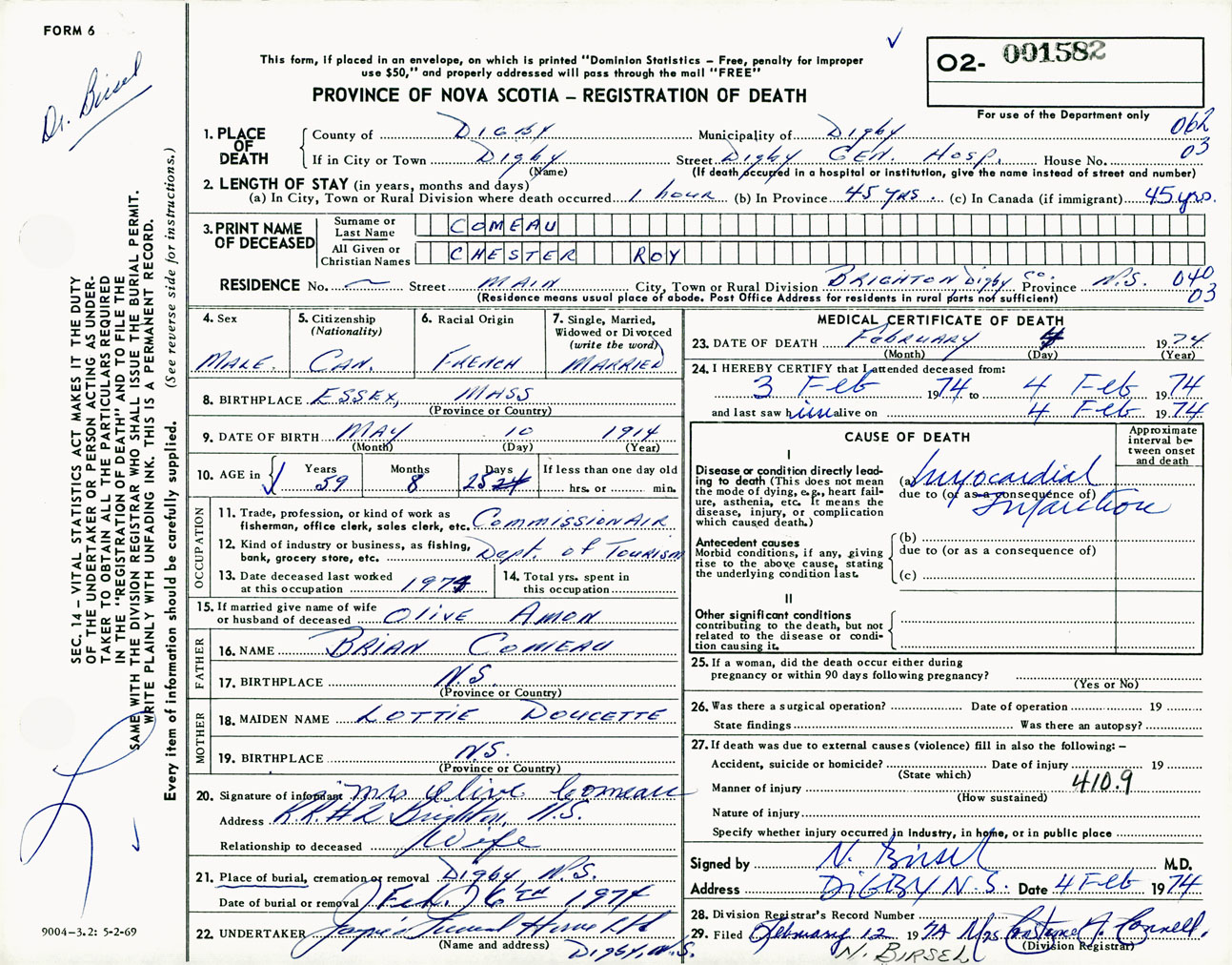 Male Death Registration: Year: 1974 number: 1582