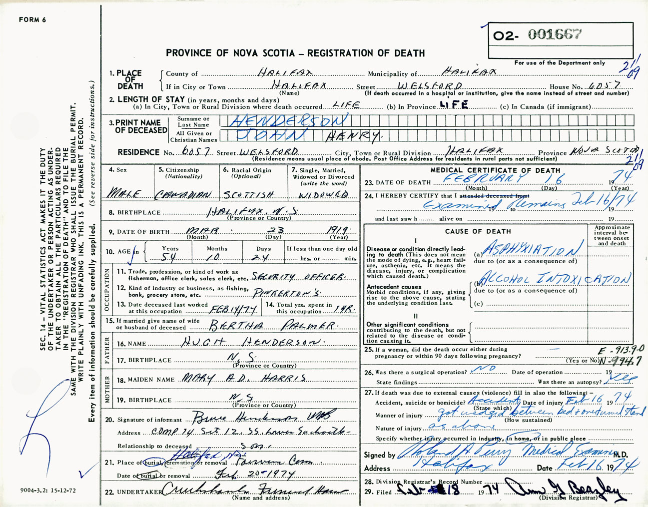 Male Death Registration: Year: 1974 number: 1667