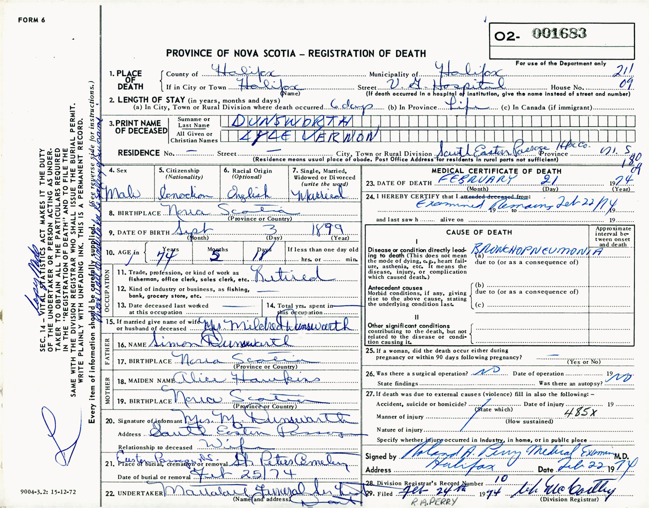 Male Death Registration: Year: 1974 number: 1683