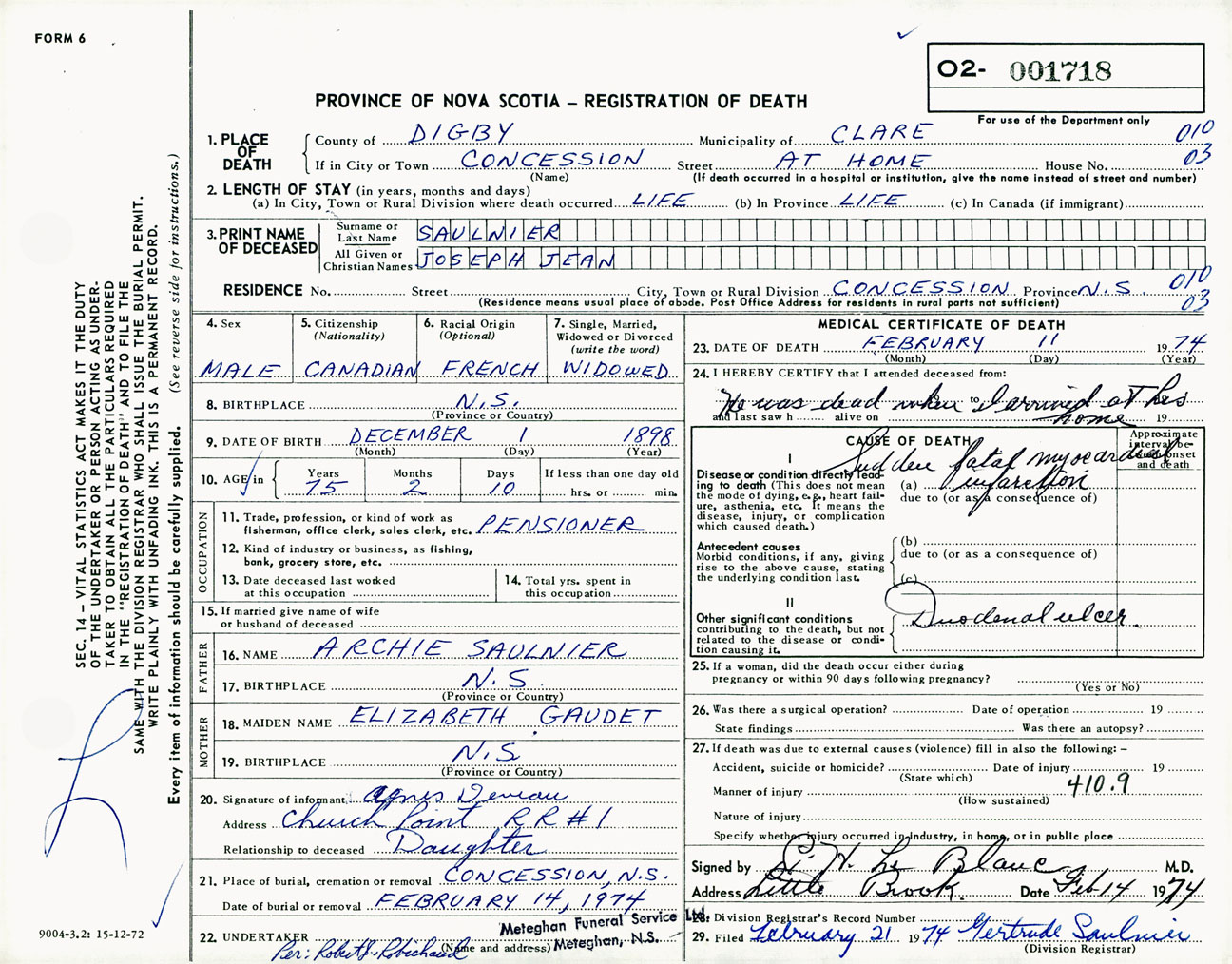 Male Death Registration: Year: 1974 number: 1718